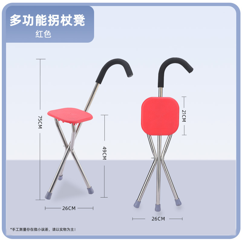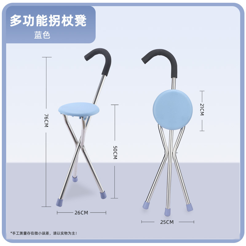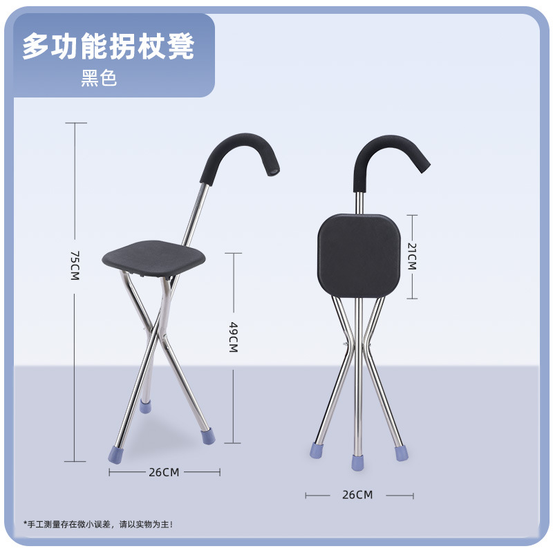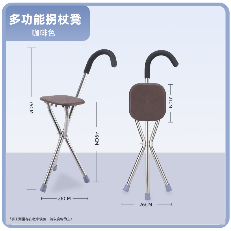 노인용 지팡이 의자, 접이식 삼각형 지팡이 의자, 중년 및 노년층을 위한 알루미늄 합금 조절식 지팡이 의자스토어 가기