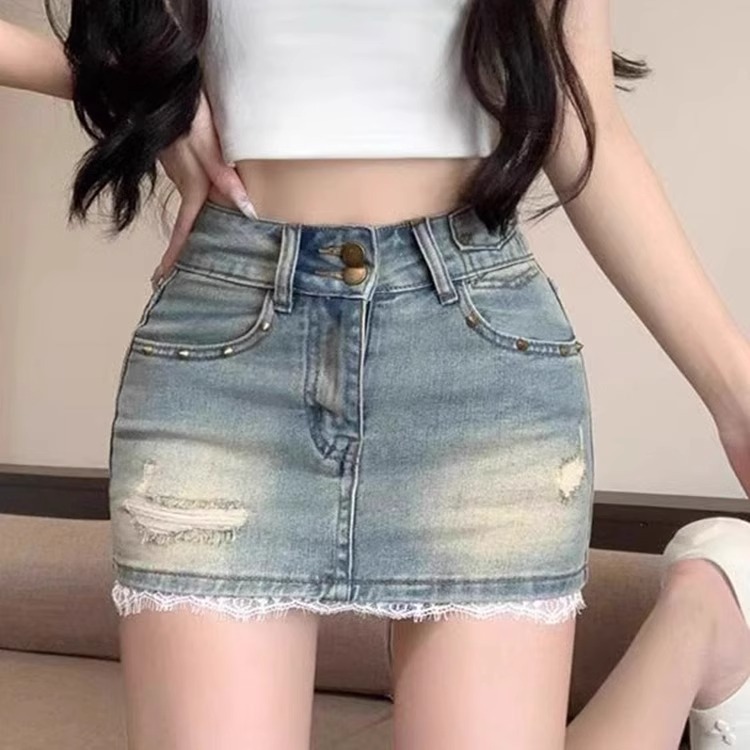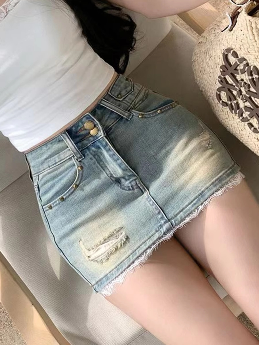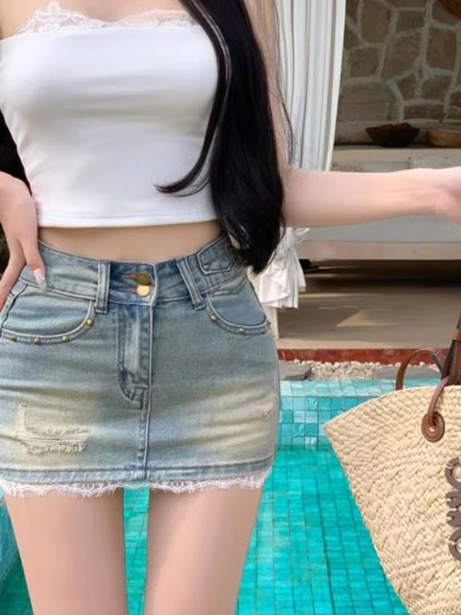 여성용 러플 데님 스커트, 여름 하이웨이스트 케이크 스커트, 슬리밍 힙 커버, A라인, 몸집이 작은 핫걸, 초짧은 피쉬테일 스커트스토어 가기
