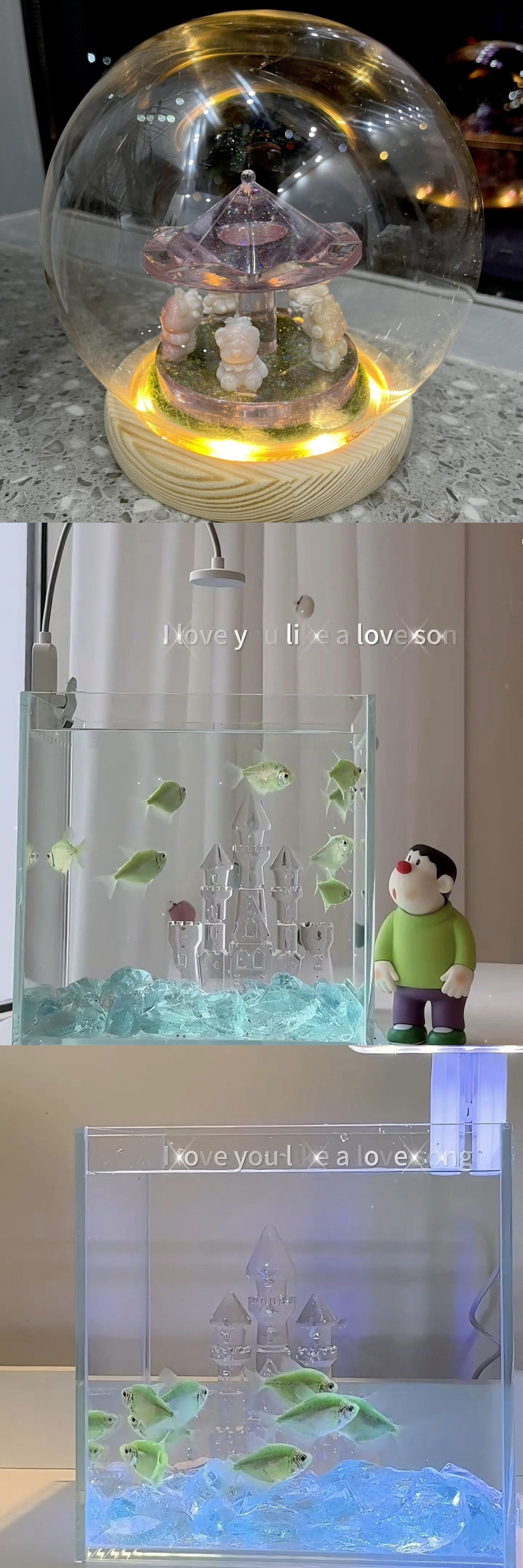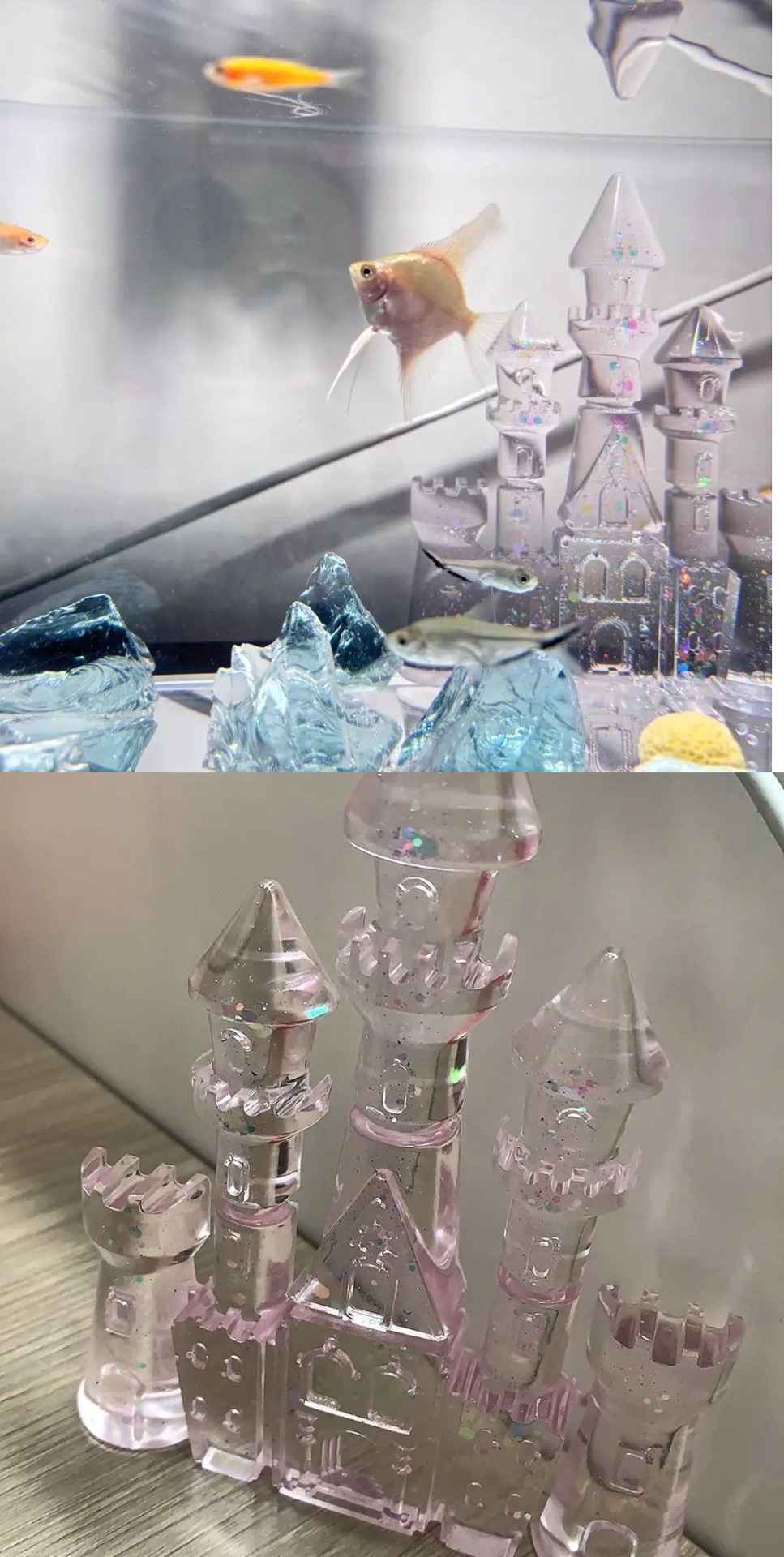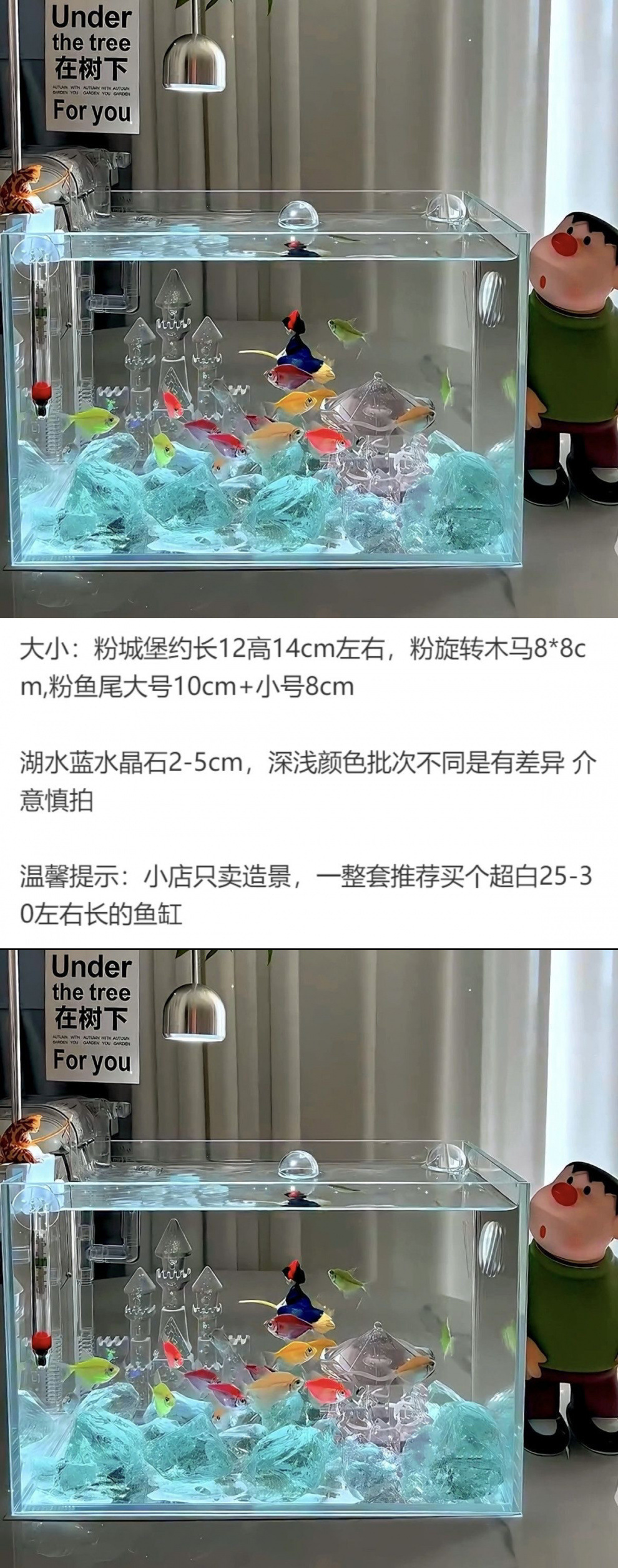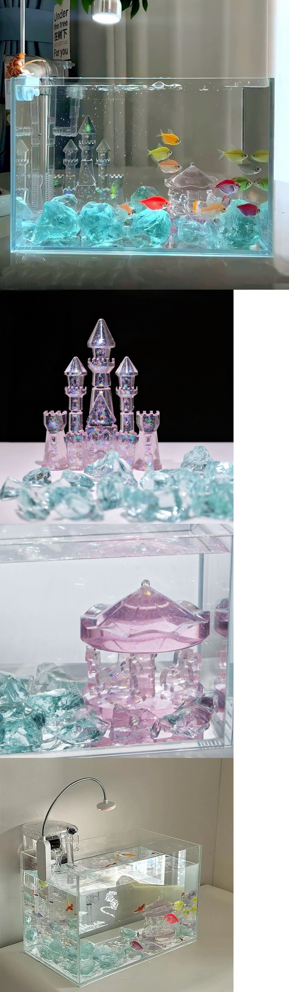 호수 블루 크리스탈 캐슬 회전 목마 수조 조경 마이크로 풍경 태국 Betta 장식품 생태 수조 장식품스토어 가기