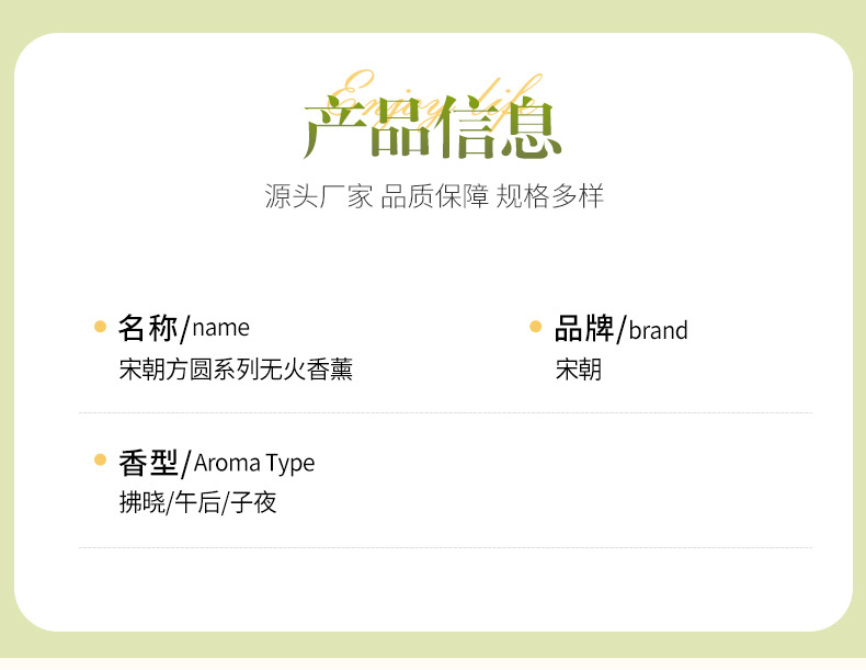 송나라 Fangyuan 시리즈 불없는 아로마 테라피 실내 장기간 사용 침실 욕실 향수 장식품 데이트 텍스처 선물