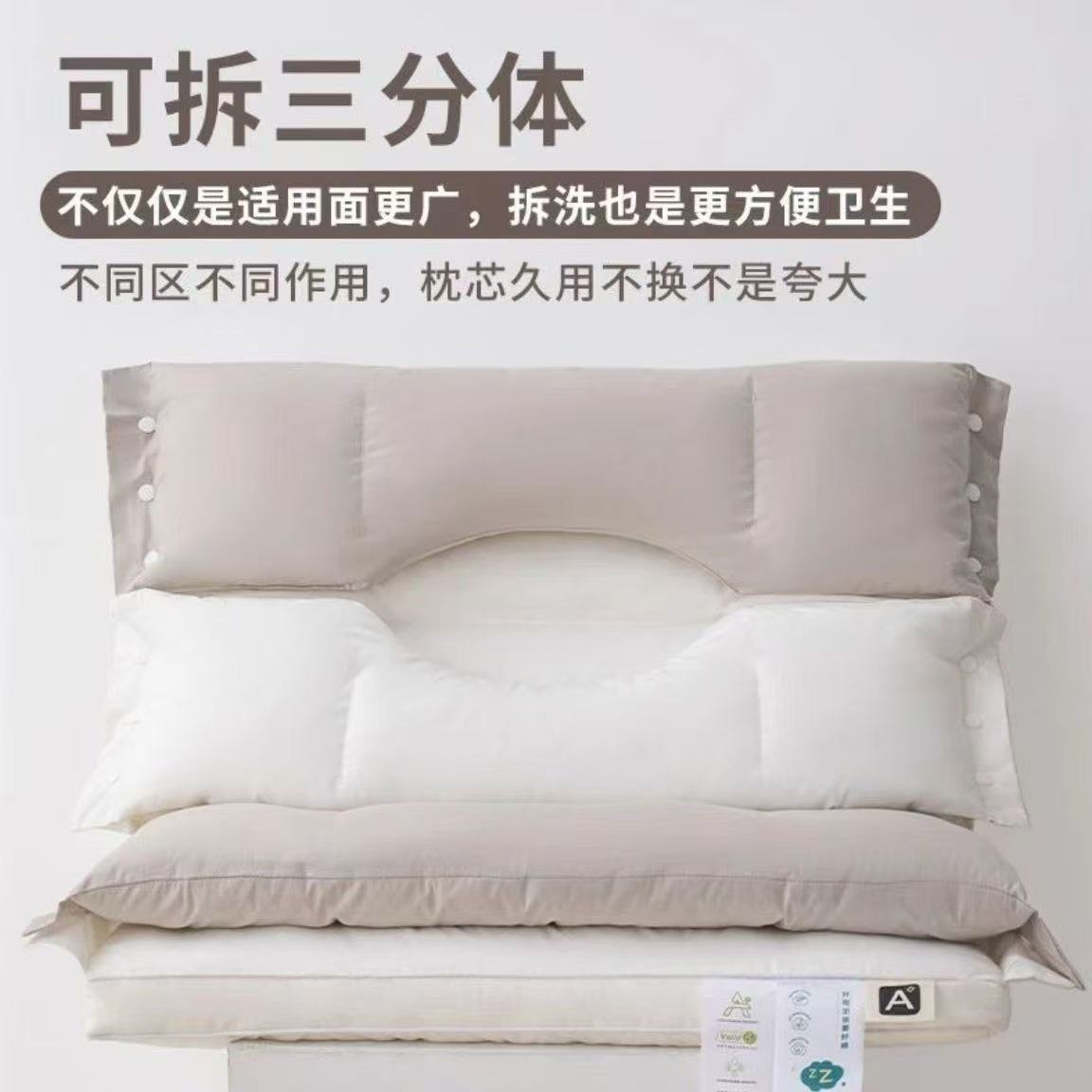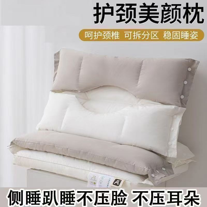 이중 수면 베개 코어, 귀 보호 및 목 보호, 측면 수면을 위한 특수 성인 기숙사 베개, 탈부착 및 세탁 가능한 3-in-1 베개스토어 가기