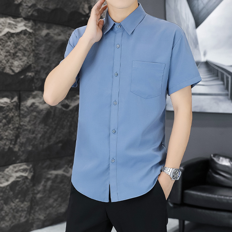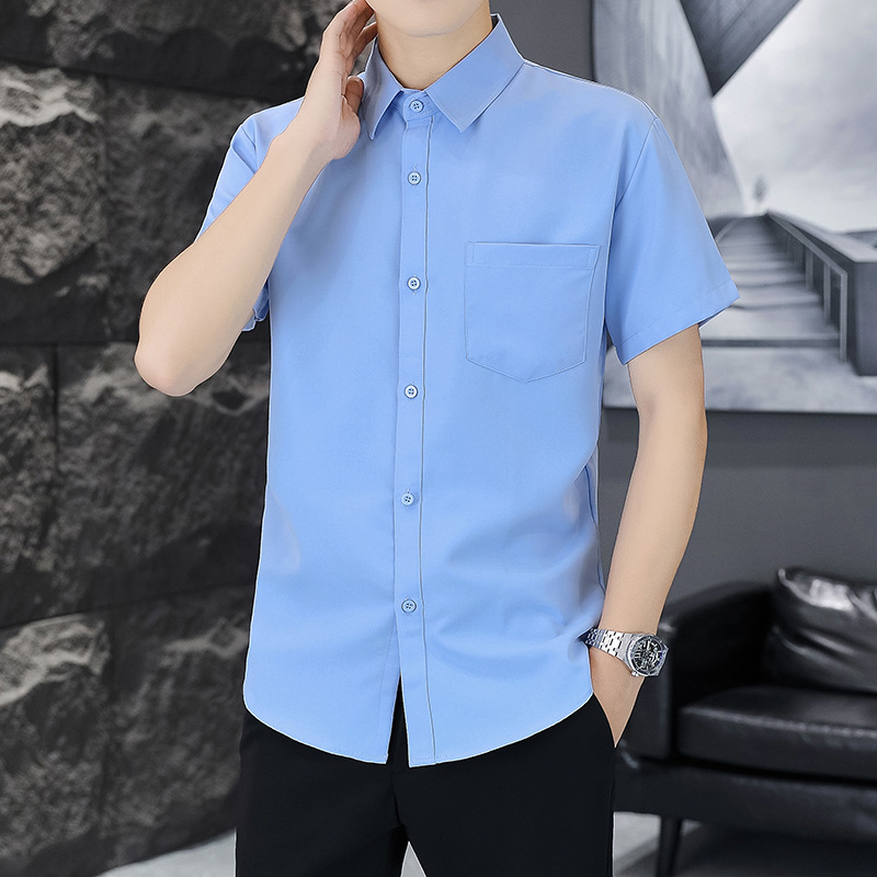 2025 봄 신작 남성용 반팔 흰색 셔츠 작업복 노다림질 주름 방지 포켓 솔리드 컬러 남성용 반팔 셔츠스토어 가기
