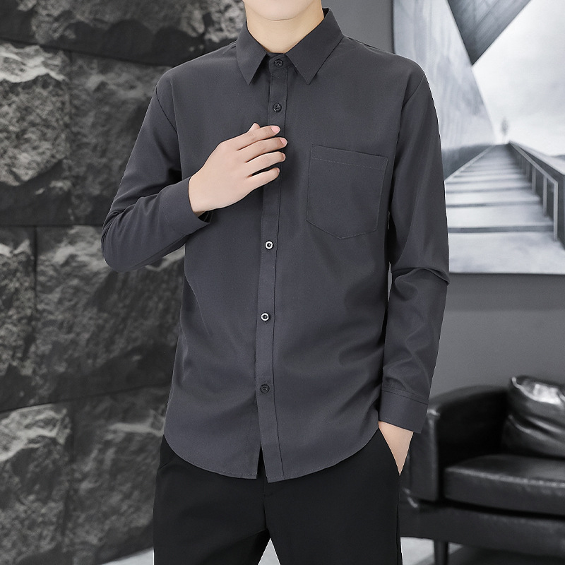 • 긴팔 셔츠 다크 그레이 [포켓 스타일]