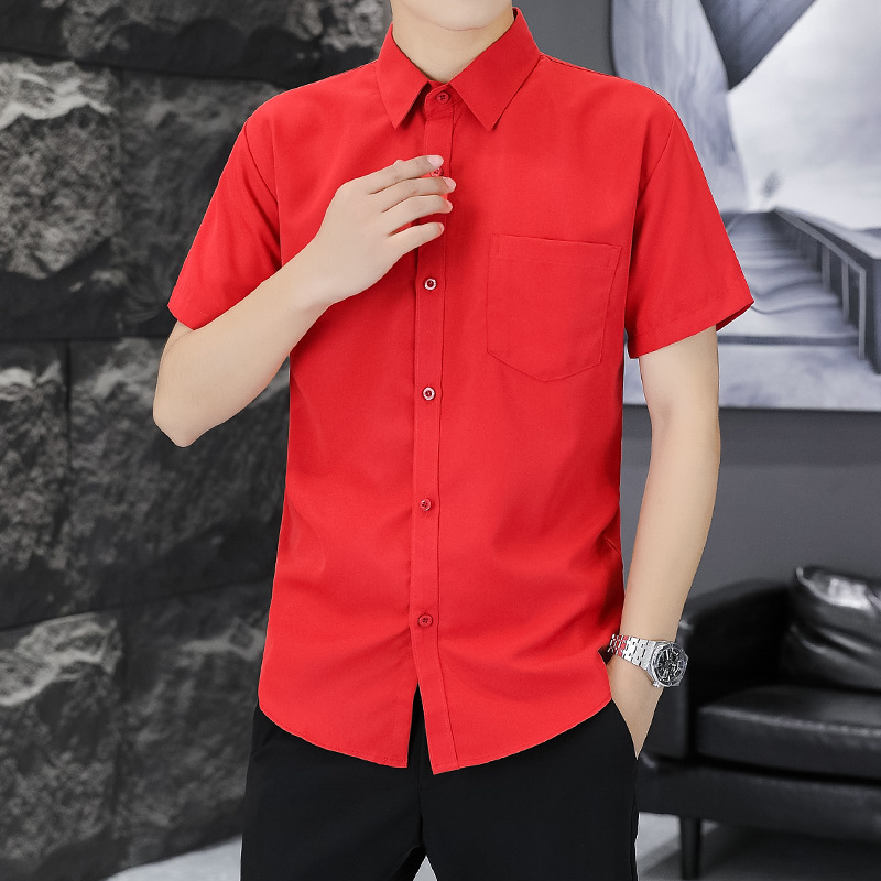 • 빨간색 반팔 셔츠 [포켓 스타일]