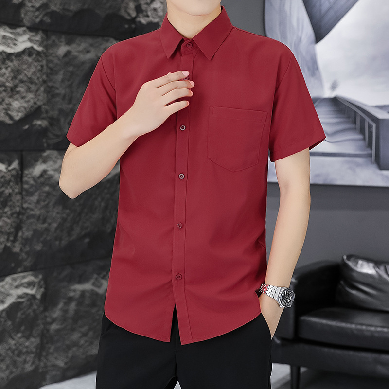 • 반팔 셔츠 버건디 [포켓 스타일]