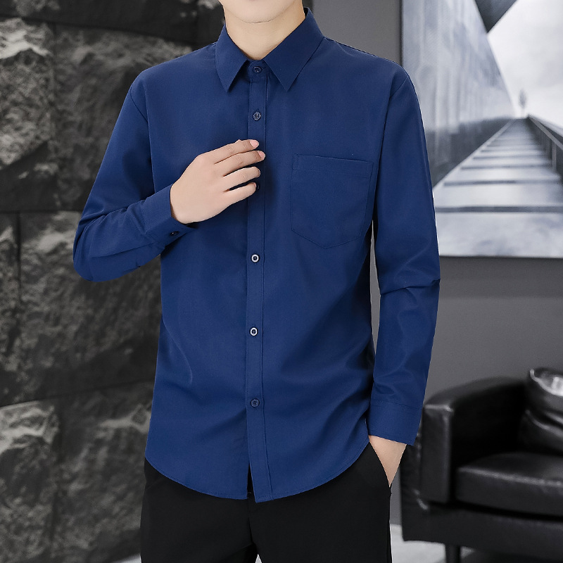 • 긴팔 셔츠 네이비블루 [포켓스타일]