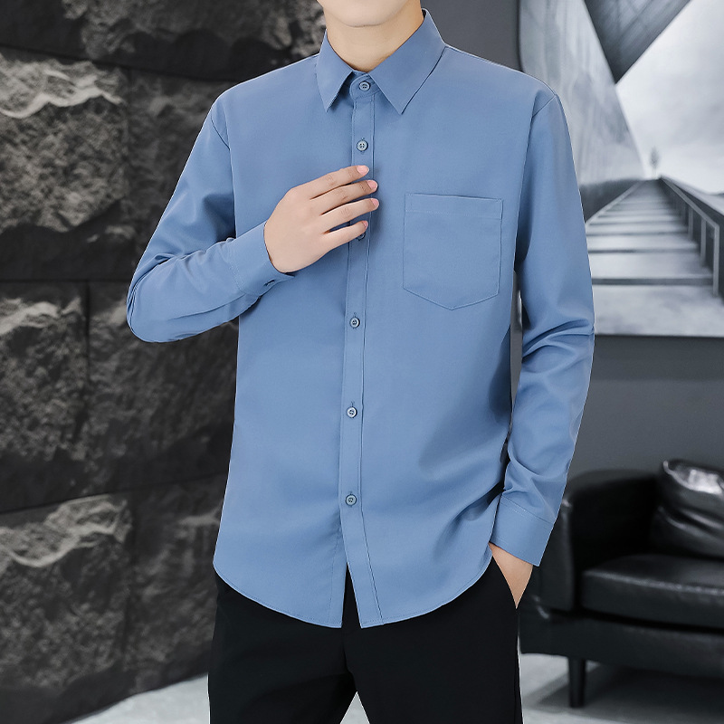 • 긴팔 셔츠 블루 [포켓 스타일]