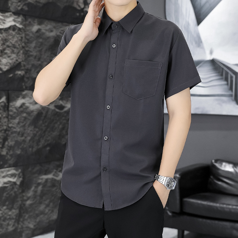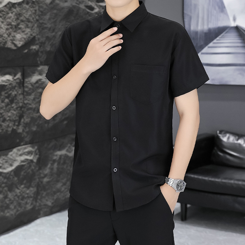 2025 봄 신작 남성용 반팔 흰색 셔츠 작업복 노다림질 주름 방지 포켓 솔리드 컬러 남성용 반팔 셔츠