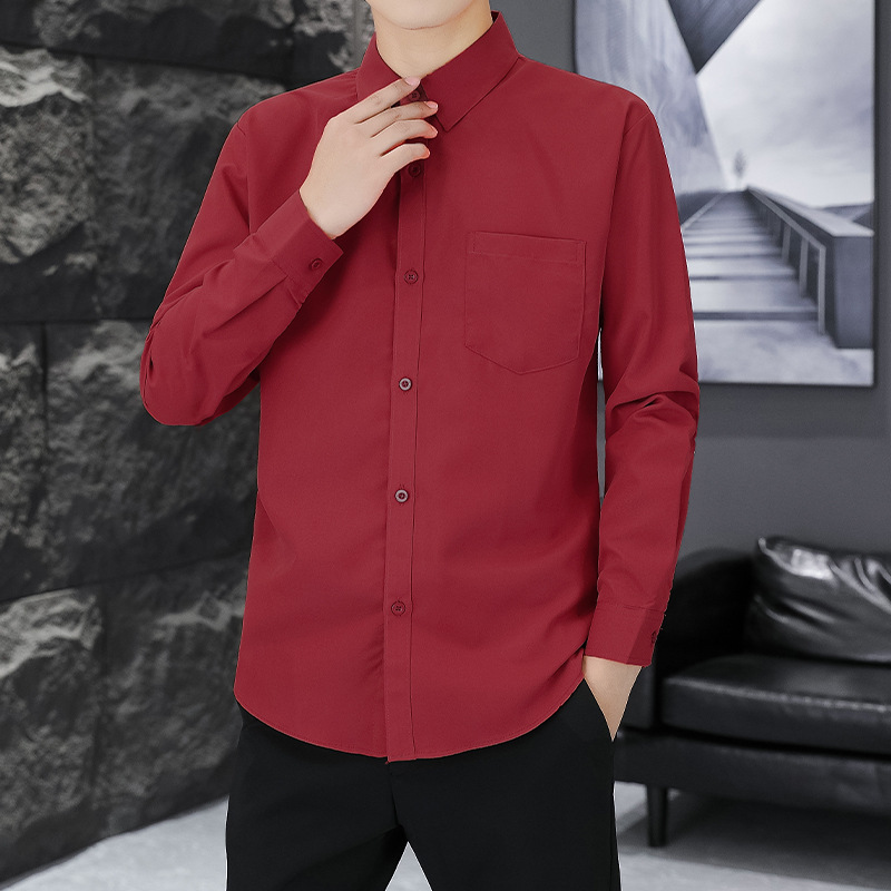 • 긴팔 셔츠 버건디 [포켓 스타일]