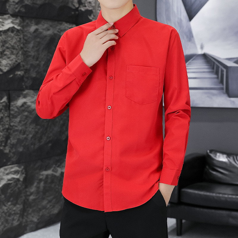 • 빨간색 긴팔 셔츠 [포켓 스타일]