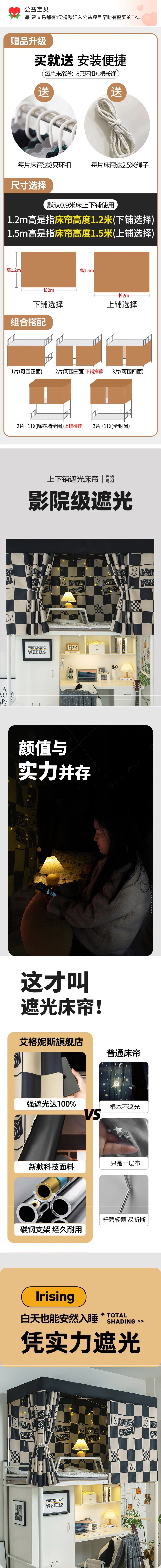 대학생 기숙사 침대 커튼 두꺼운 강력한 차광 커튼 상단 침대 남성용 하단 침대 여성용 침대 커튼 이층 침대 커튼스토어 가기
