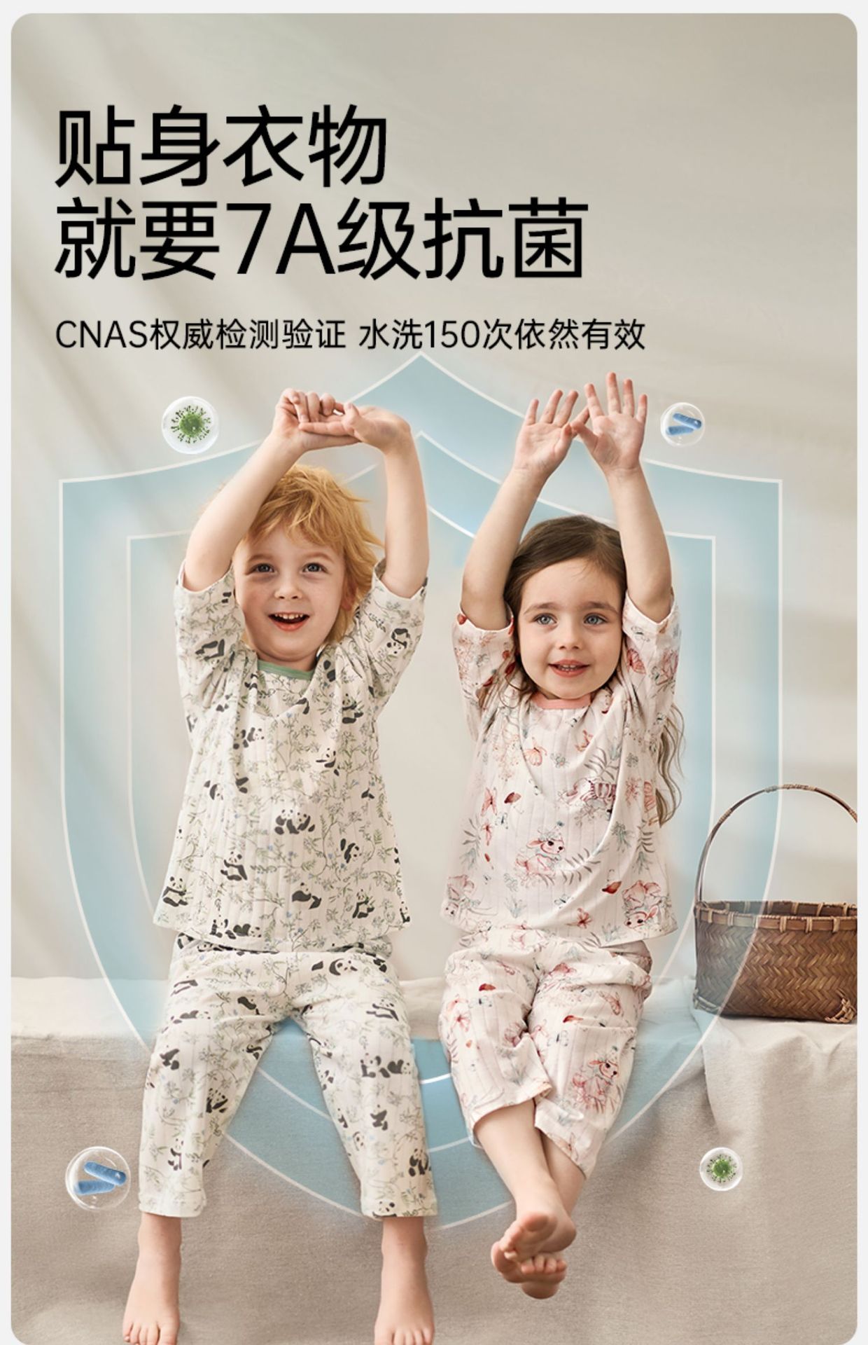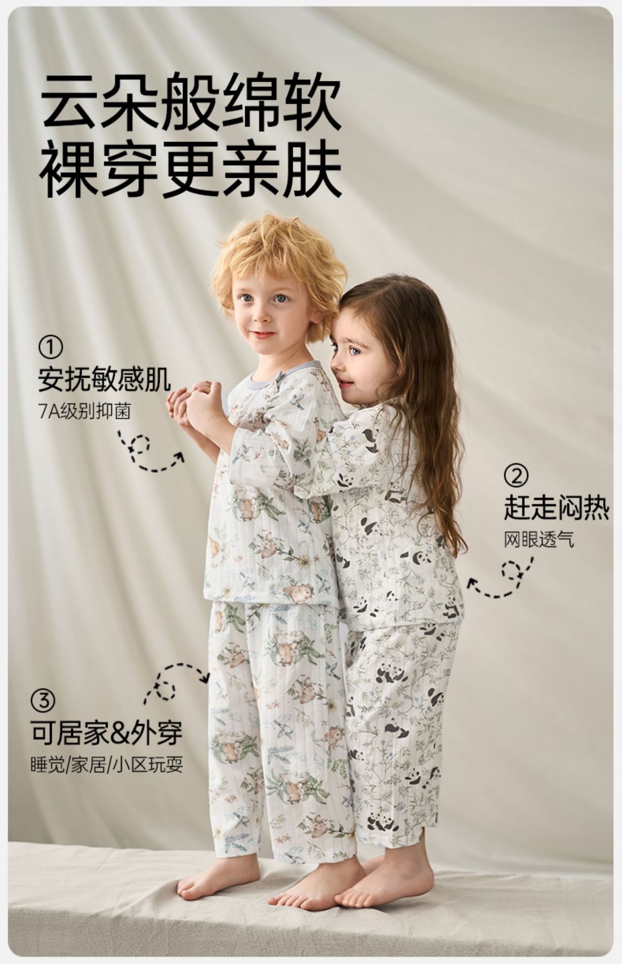 Ouyun 어린이 잠옷 세트 2025 여름 새로운 얇은 순수 코튼 베이비 홈 의류 소년과 소녀 에어컨 의류스토어 가기