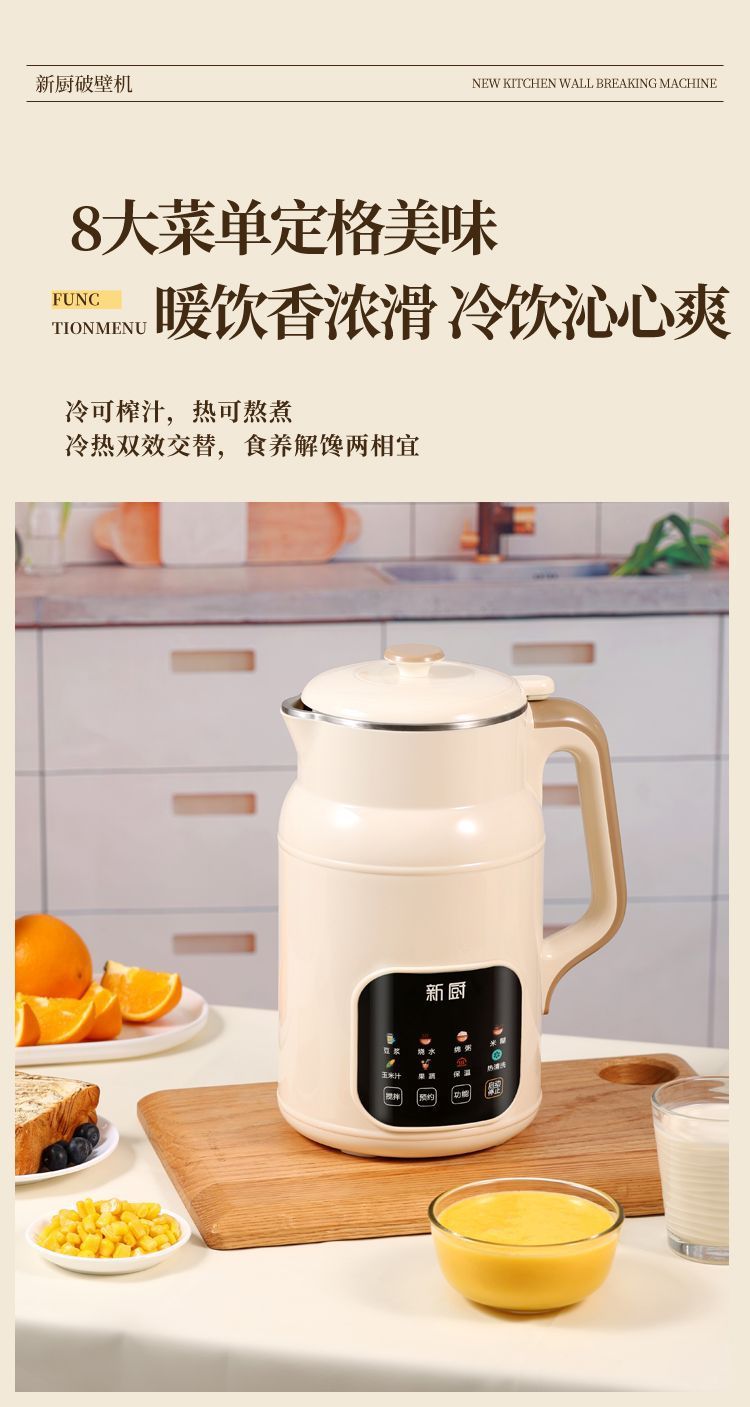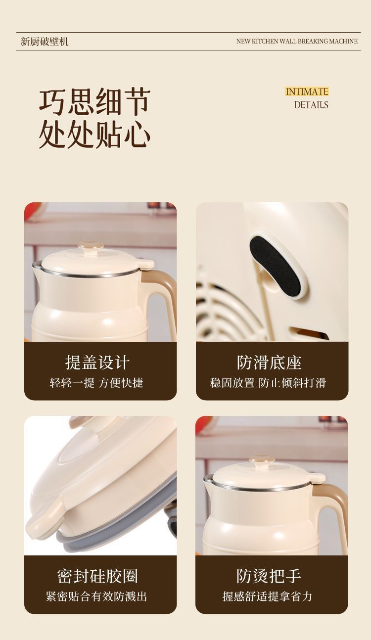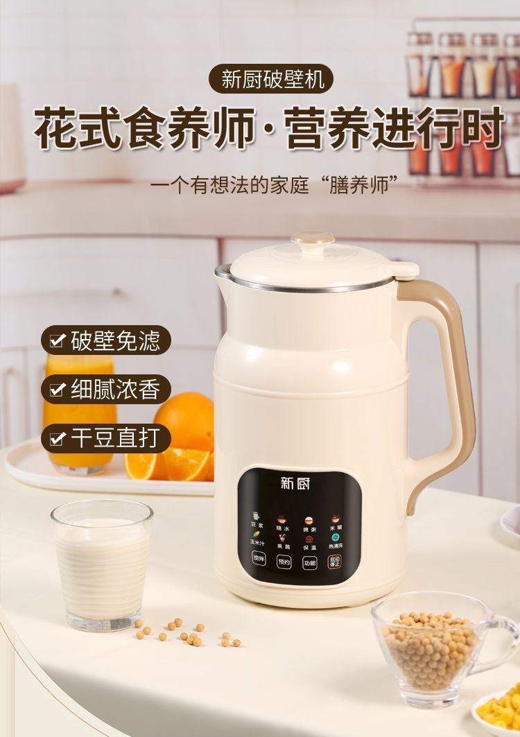 새로운 주방 벽 파괴 기계 두유 기계 다기능 완전 자동 가열 대용량 필터 프리 요리 통합 식품 보충 벽 파괴 기계