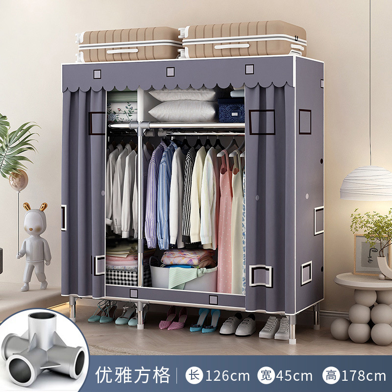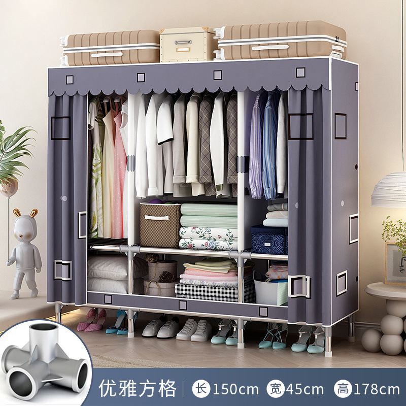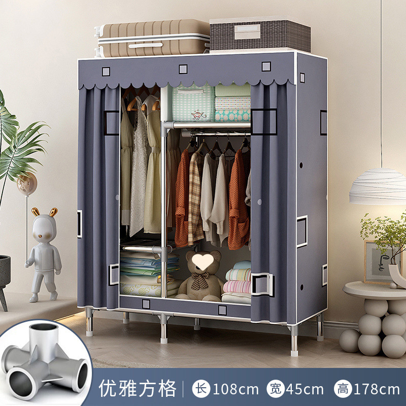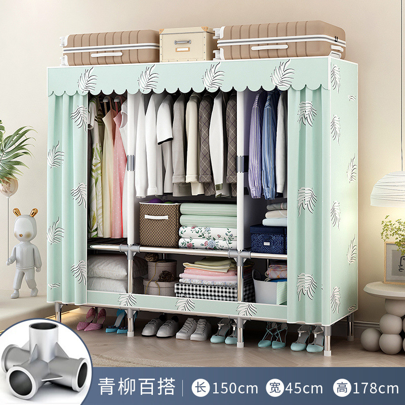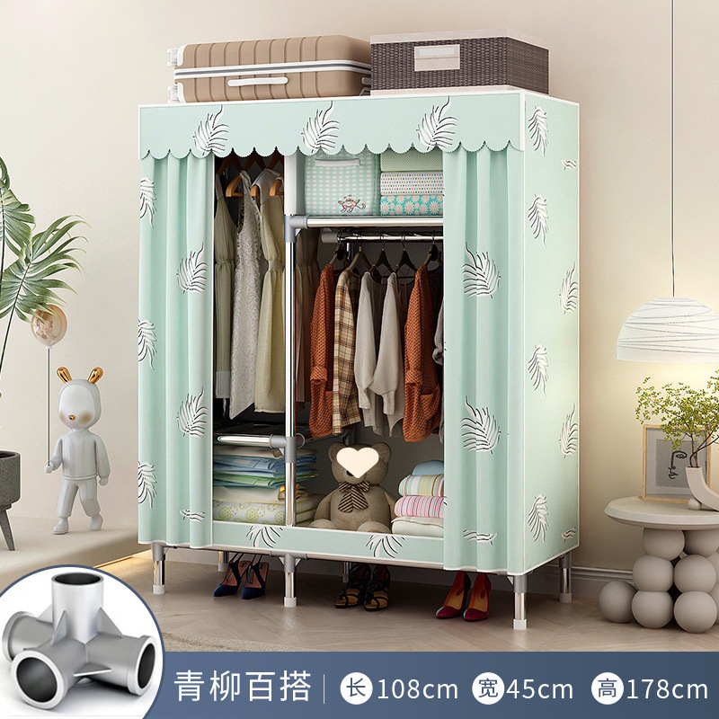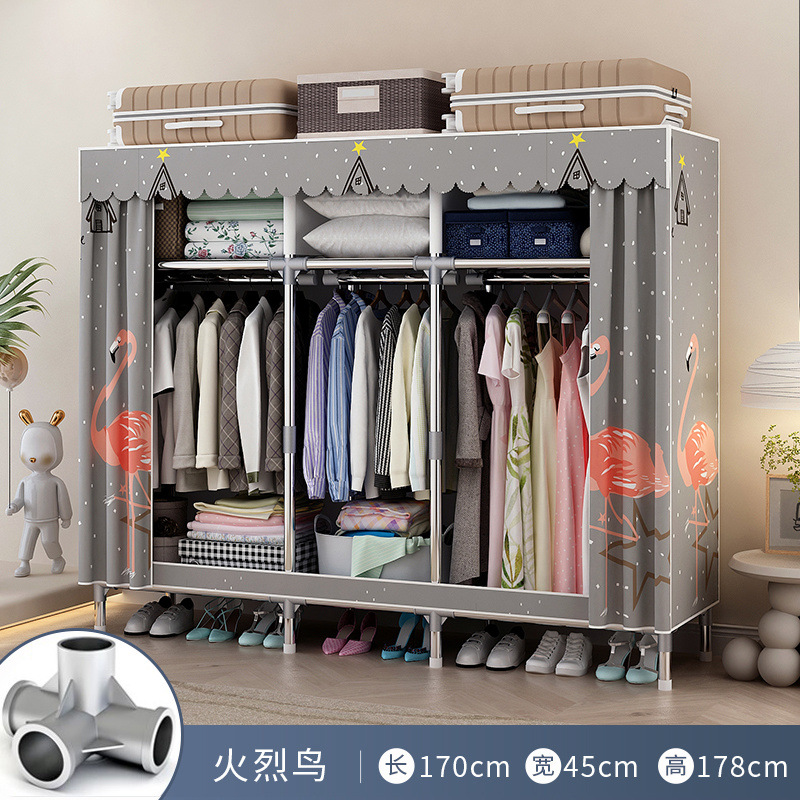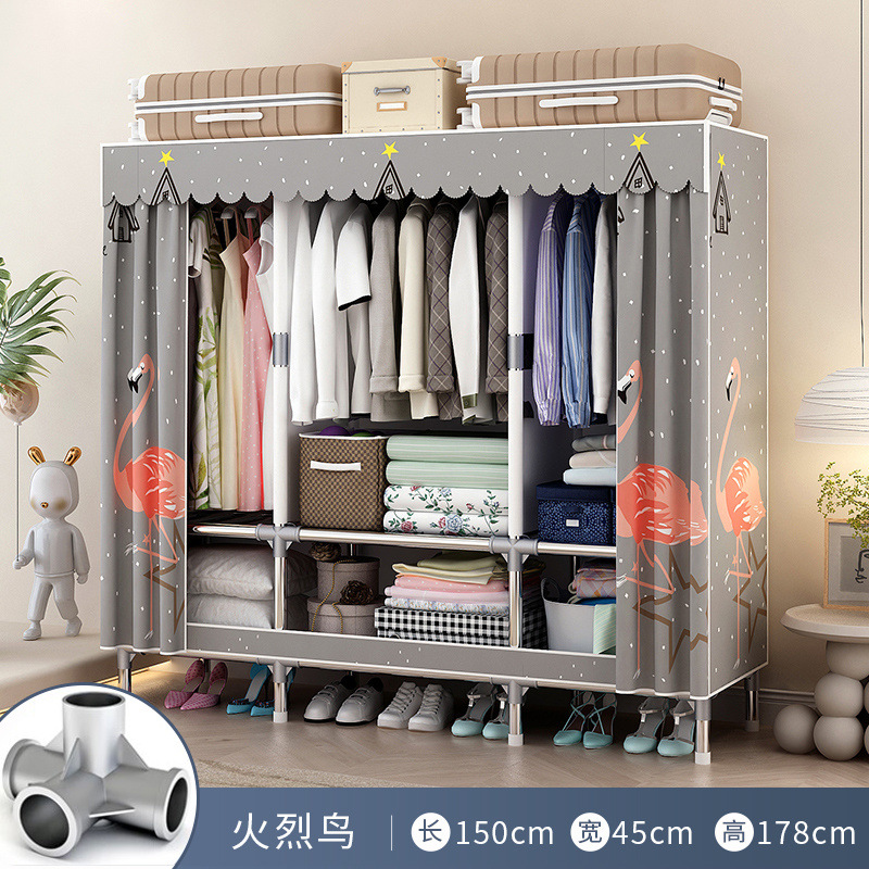 가정용 침실용 간이 옷장, 전체 강철 프레임 천 옷장, 임대실, 강철 파이프 두꺼운 바닥 스토리지 캐비닛