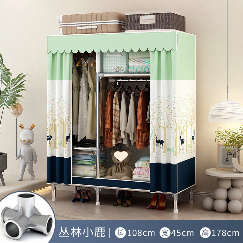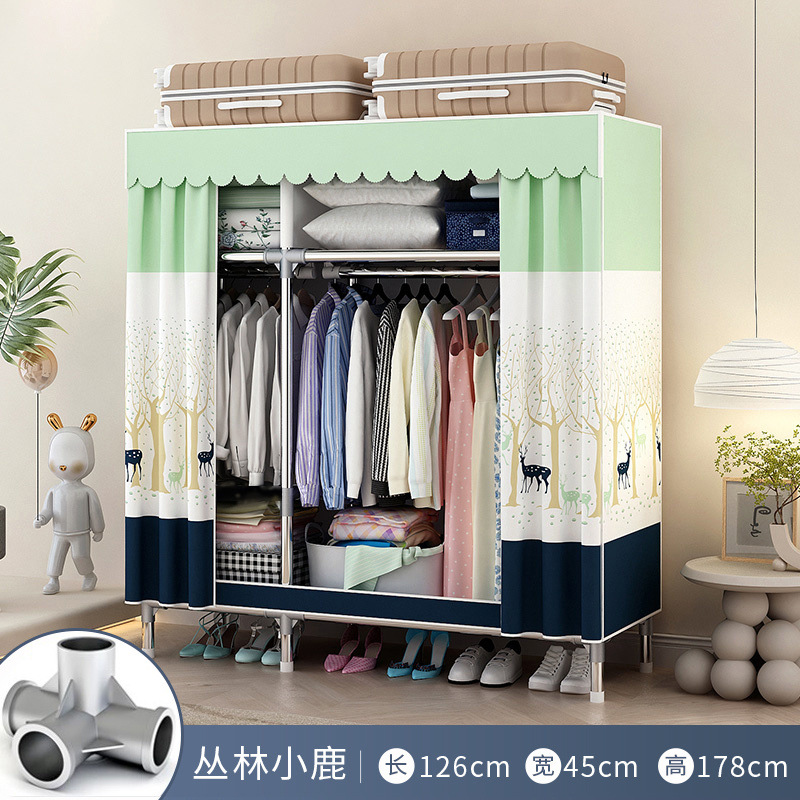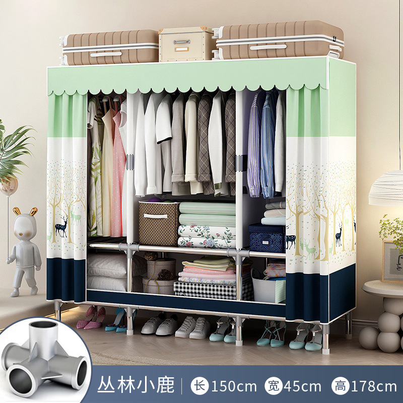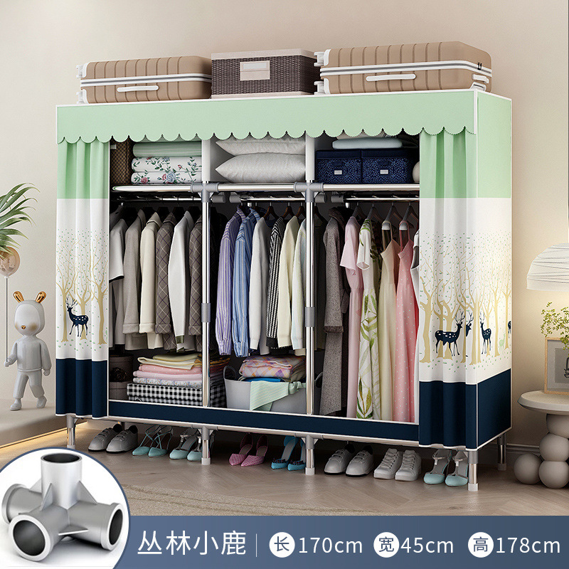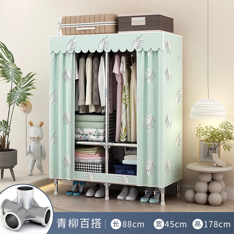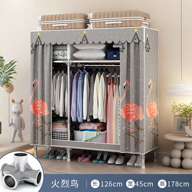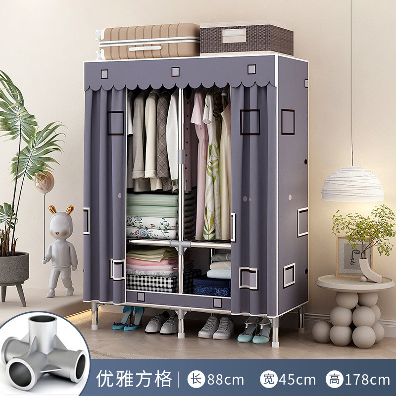 가정용 침실용 간이 옷장, 전체 강철 프레임 천 옷장, 임대실, 강철 파이프 두꺼운 바닥 스토리지 캐비닛