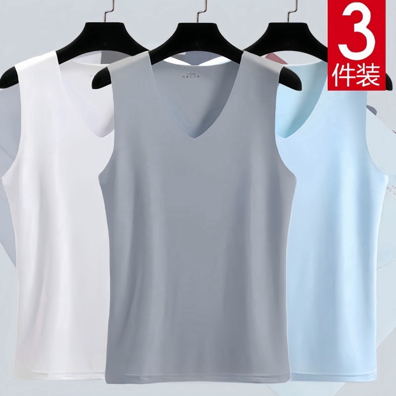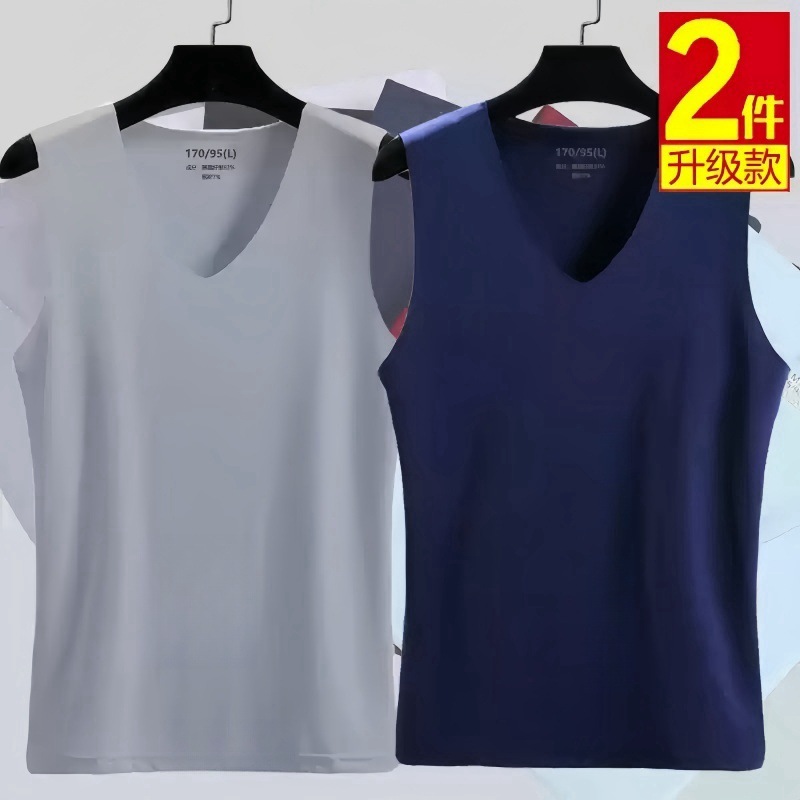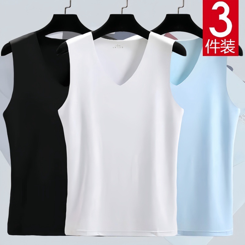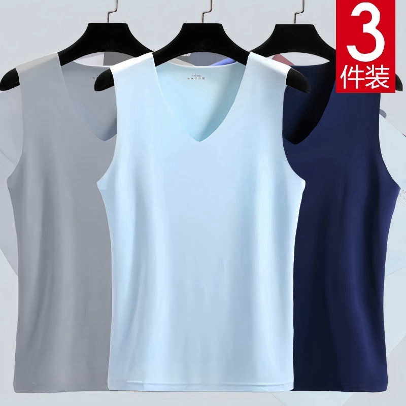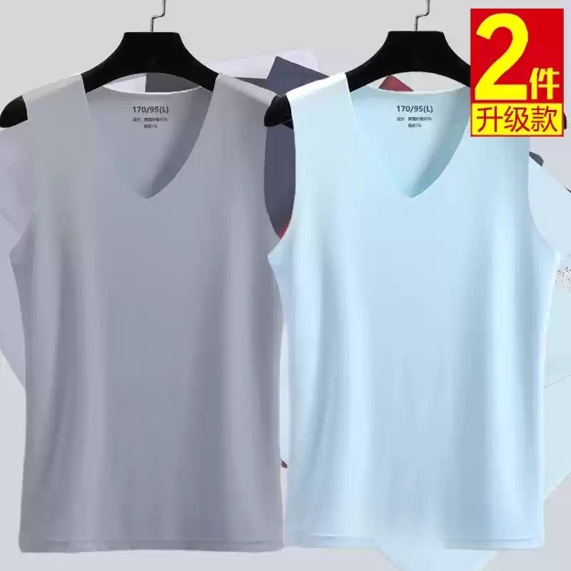 아이스 실크 심리스 조끼 남성 여름 얇은 칼라 스포츠 통기성 속건성 민소매 바닥 탱크 탑 남성스토어 가기