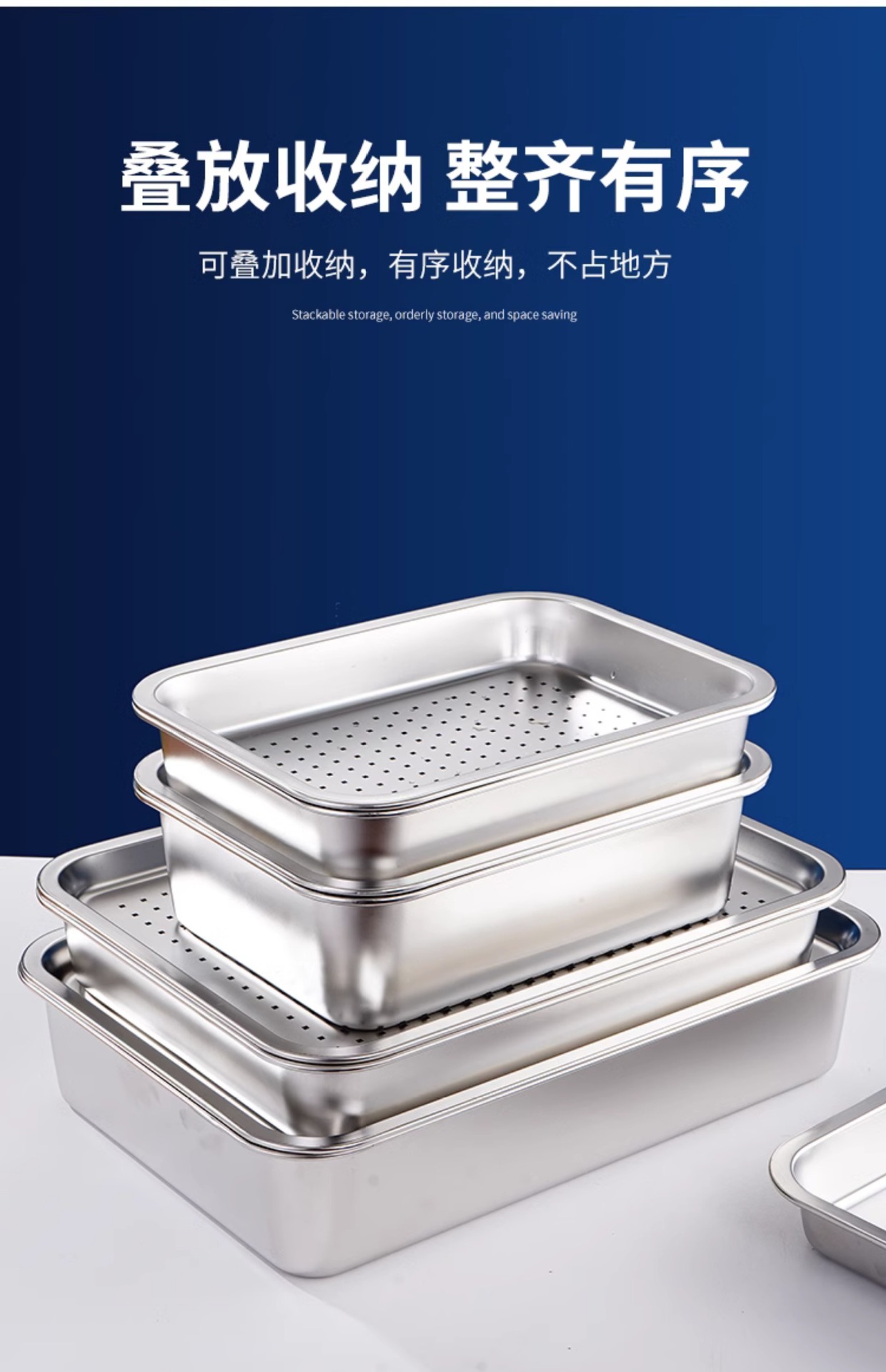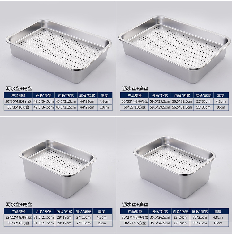 # 304 스테인레스 스틸 배수 트레이, 상업용 직사각형 펀칭 트레이, 평평한 바닥 사각형 트레이, 이중층 배수 트레이 세트스토어 가기