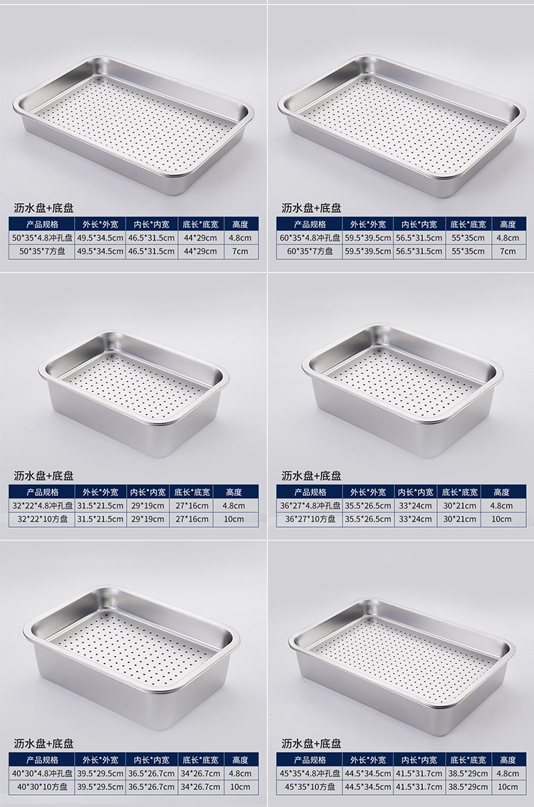 # 304 스테인레스 스틸 배수 트레이, 상업용 직사각형 펀칭 트레이, 평평한 바닥 사각형 트레이, 이중층 배수 트레이 세트