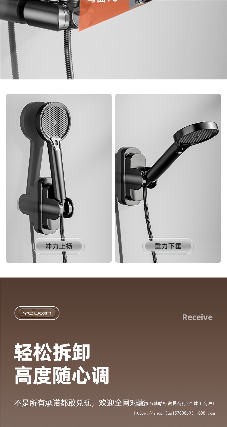 • [우아한 블랙 세트 2] 흡착컵 샤워기 홀더 + 6단 슈퍼차저 샤워기 + 1.5m 암호화 호스₲☆