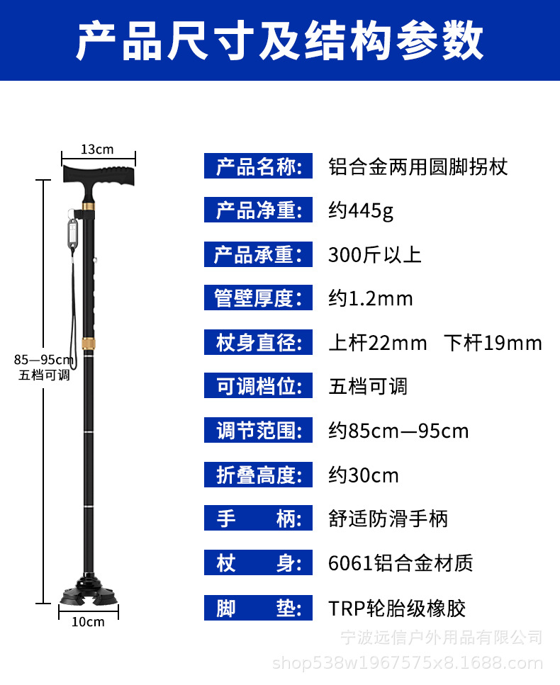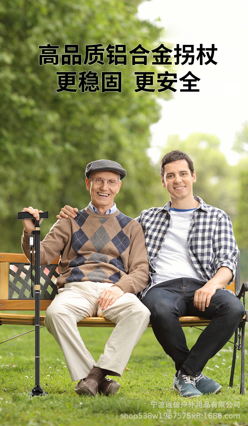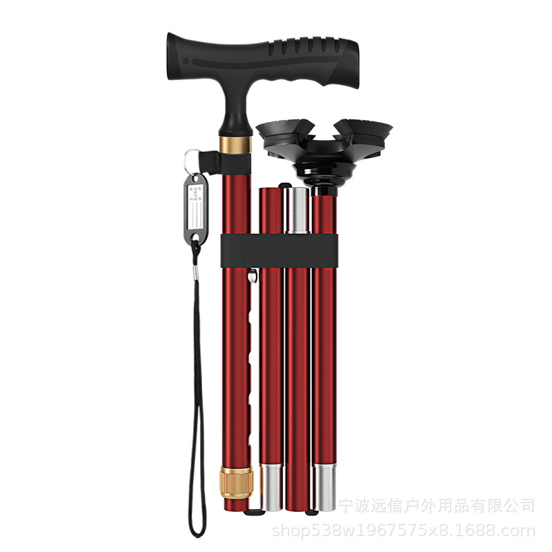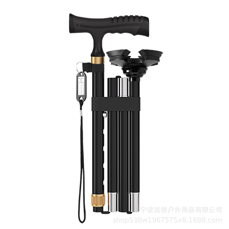 노인을 위한 알루미늄 합금 지팡이, 고무 처리된 단일 회전 4개의 다리 지팡이, 길이 접이식, 텔레스코픽 및 휴대용 도매