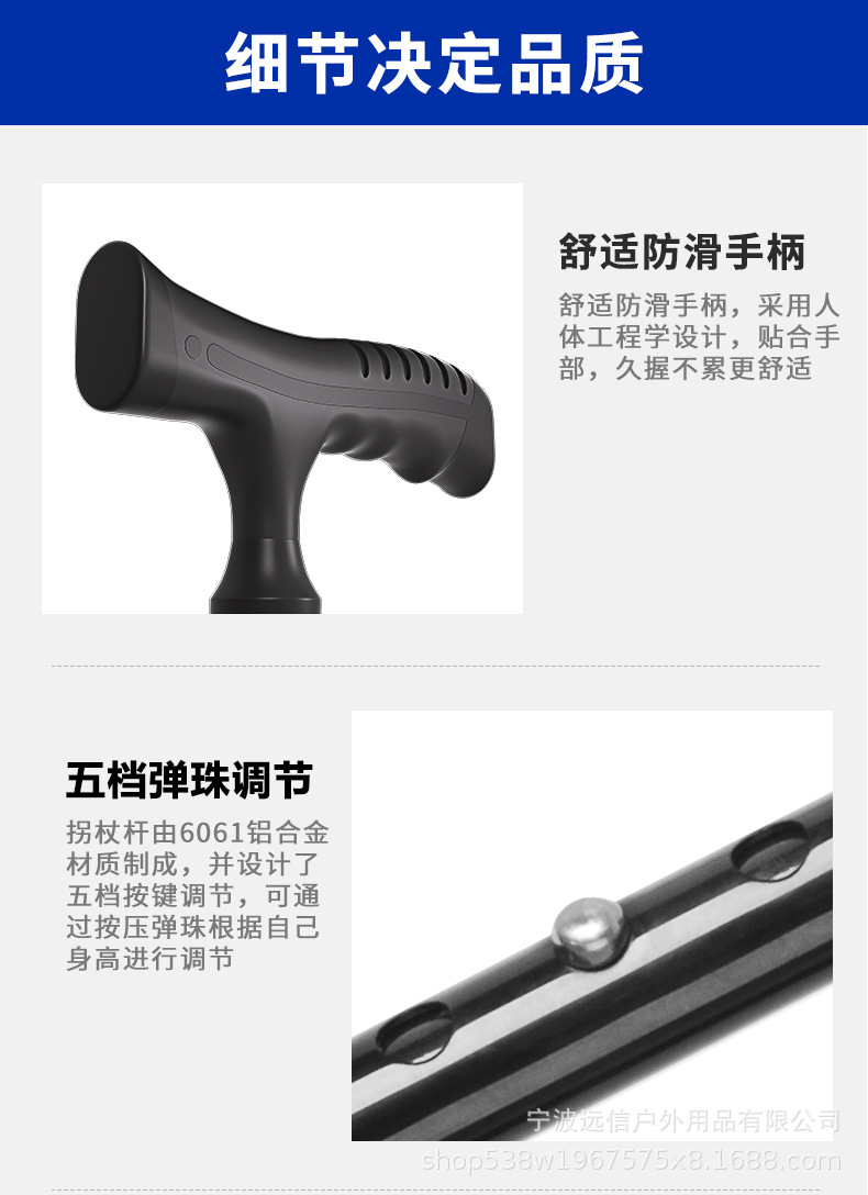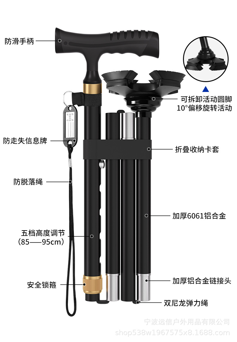노인을 위한 알루미늄 합금 지팡이, 고무 처리된 단일 회전 4개의 다리 지팡이, 길이 접이식, 텔레스코픽 및 휴대용 도매스토어 가기