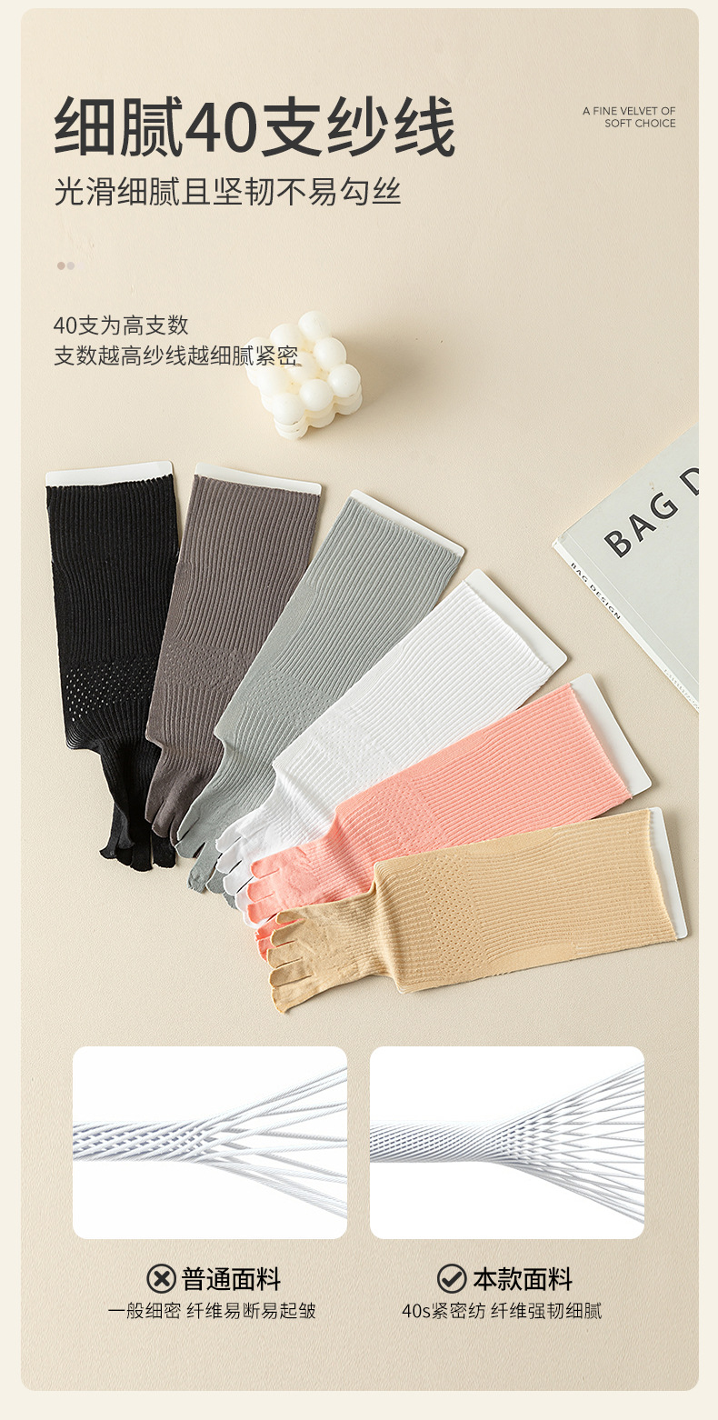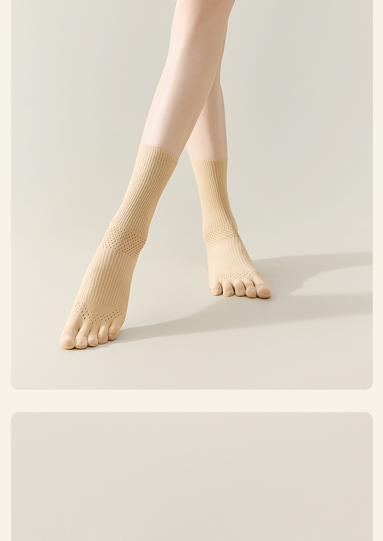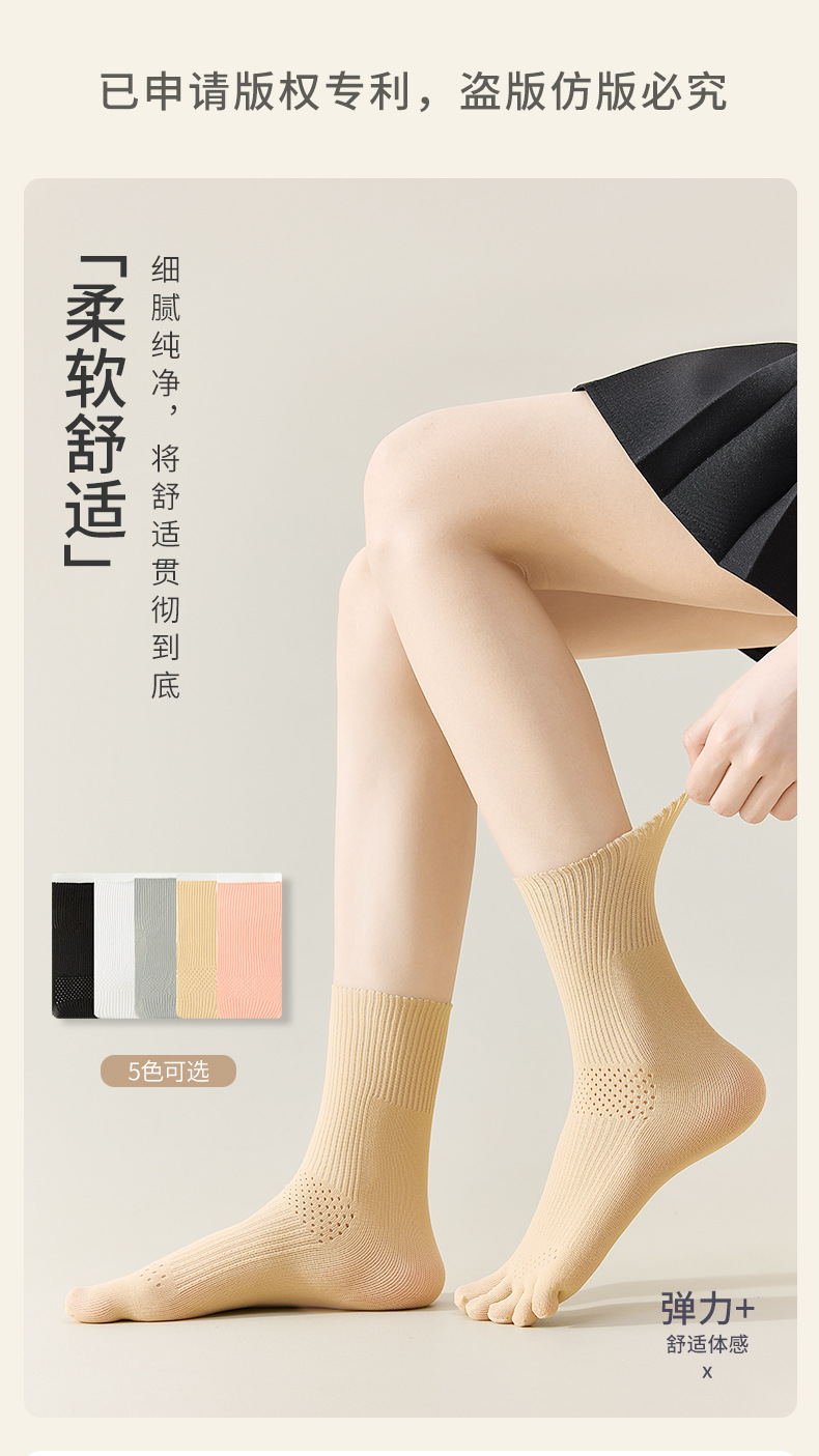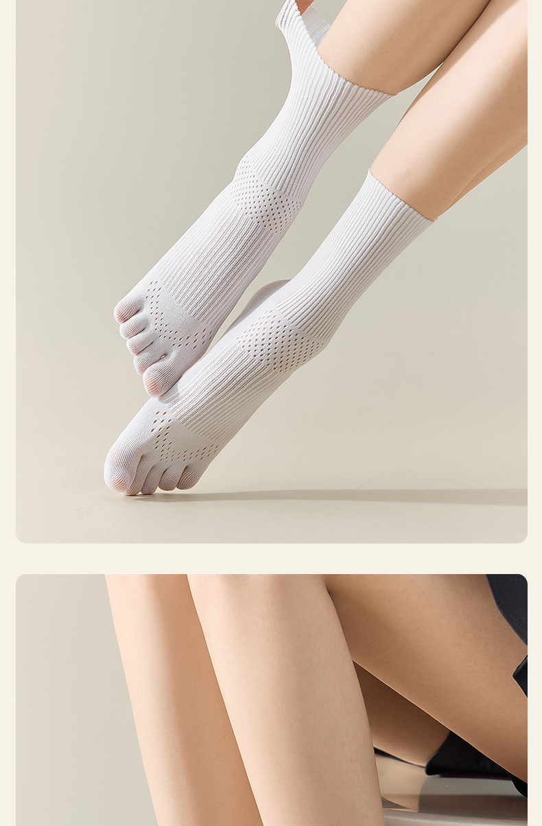 흰색 양말 여성용 종아리 중간 양말 여름 얇은 다섯 손가락 양말 여성용 발가락 양말 탈취제 중공 통기성 여성용 양말