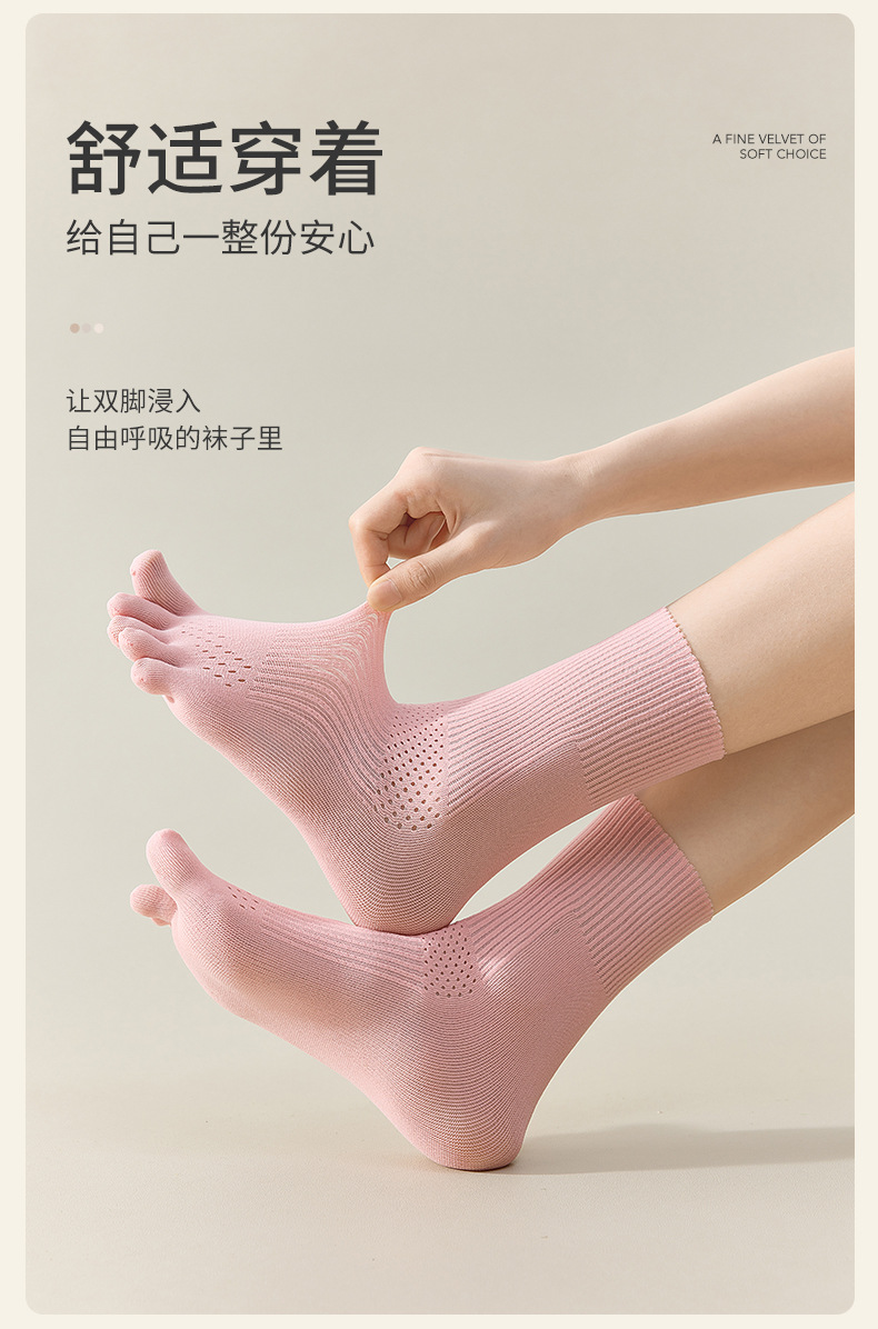 흰색 양말 여성용 종아리 중간 양말 여름 얇은 다섯 손가락 양말 여성용 발가락 양말 탈취제 중공 통기성 여성용 양말스토어 가기