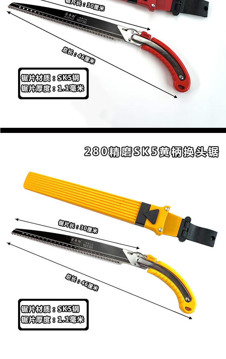 • 280 미세 연삭 sk5 빨간색 핸들 헤드 교체 톱