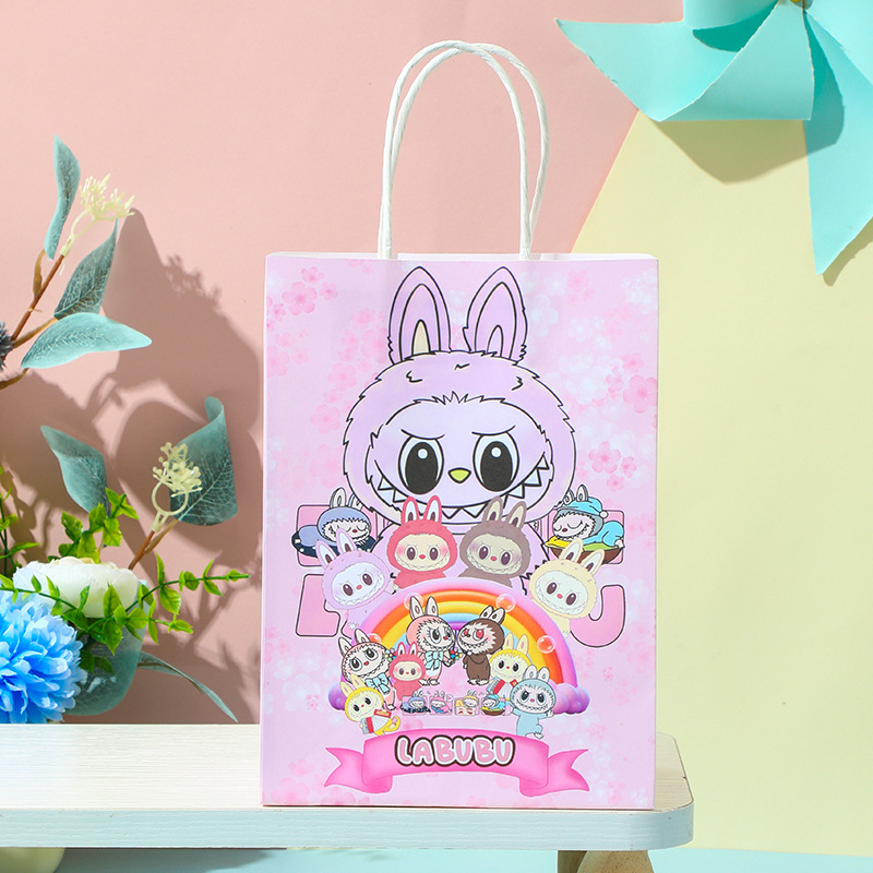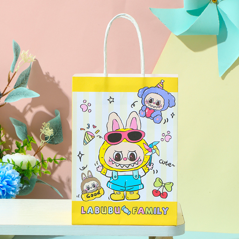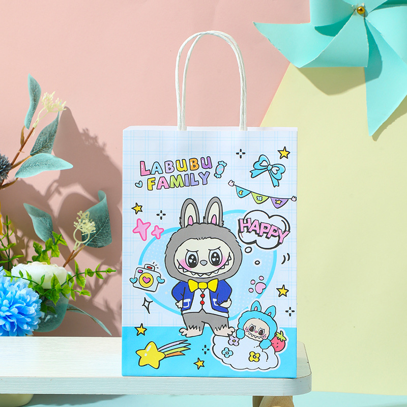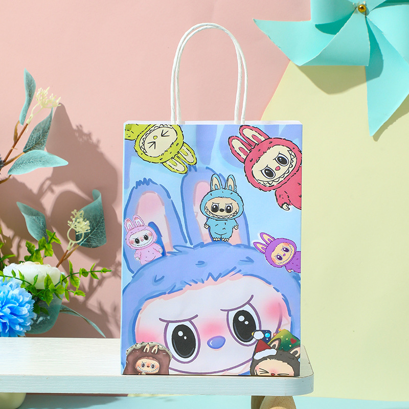 새로운 만화 귀여운 라부 선물 가방 포장 가방 크래프트 종이 쇼핑 종이 가방 크리 에이 티브 기념품 핸드백스토어 가기