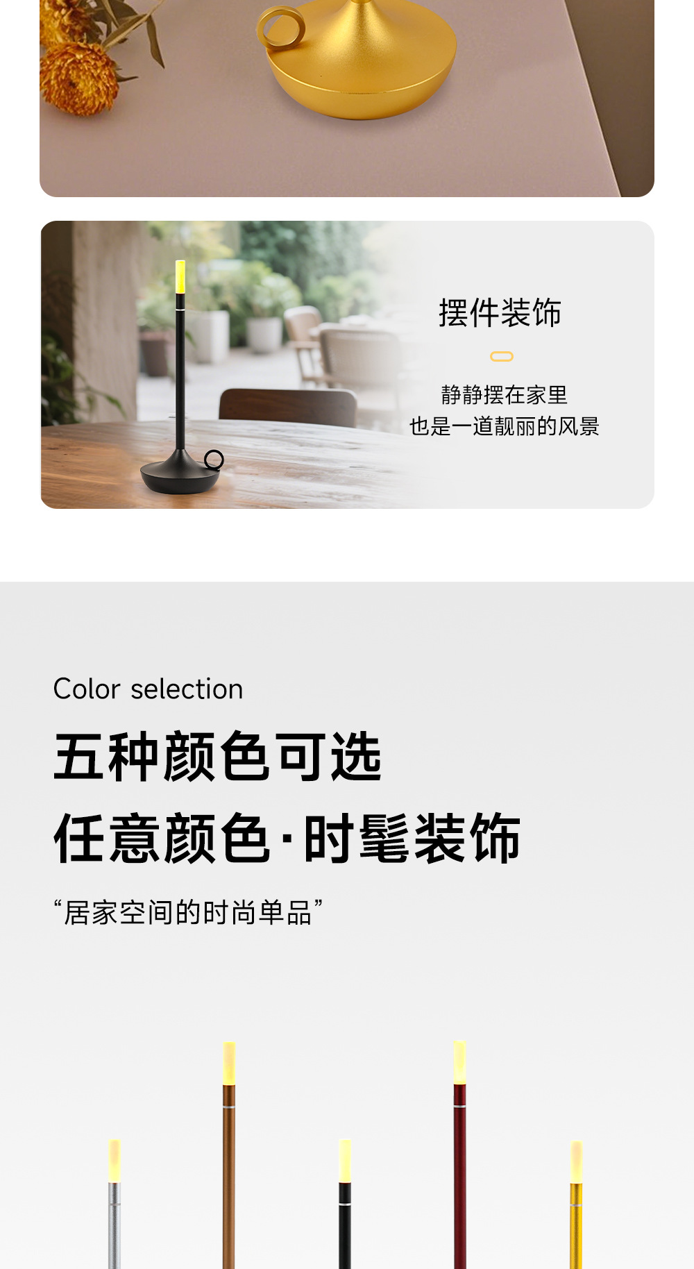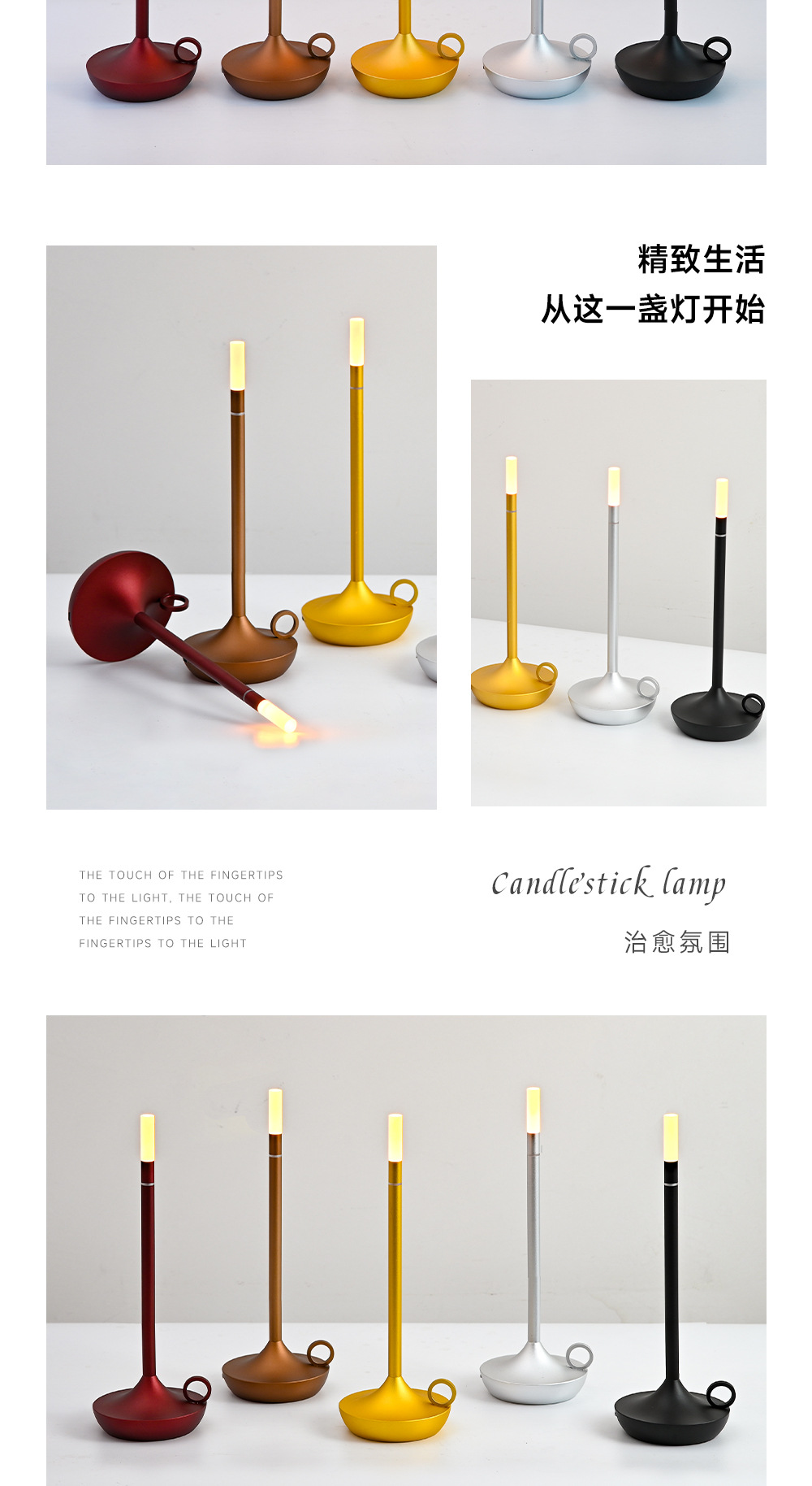 양초 금속 테이블 램프 LED 레스토랑 침실 거실 머리맡 램프 터치 촛불 분위기 야간 조명 터치 가능