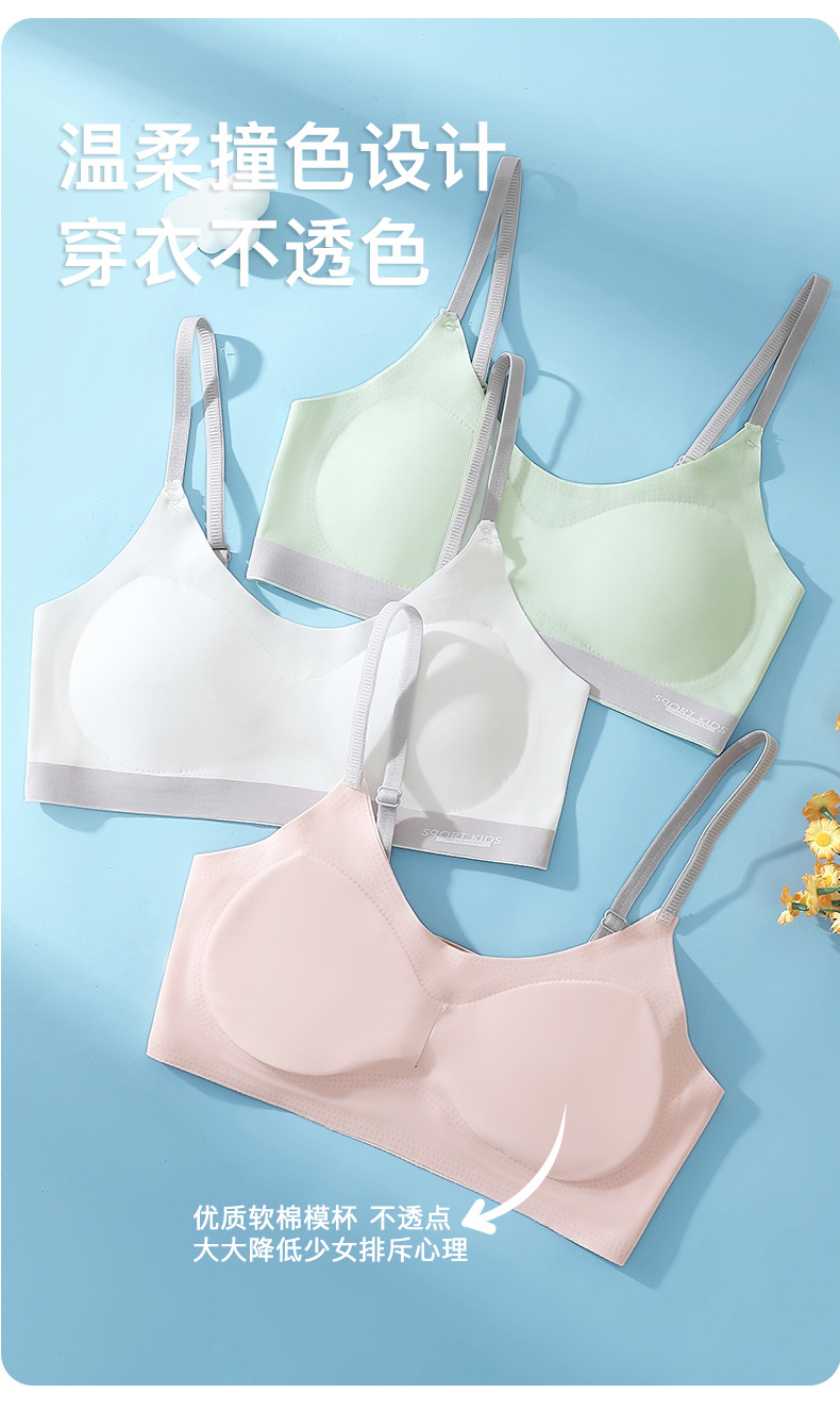 신입생 속옷, 여아 스포츠 충격 방지 조끼, 발달기 중학생 및 고등학생, 심리스 여아 브라, 얇은스토어 가기