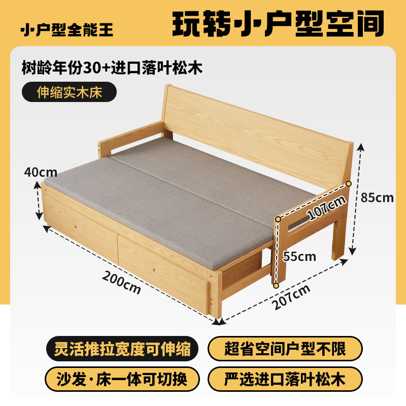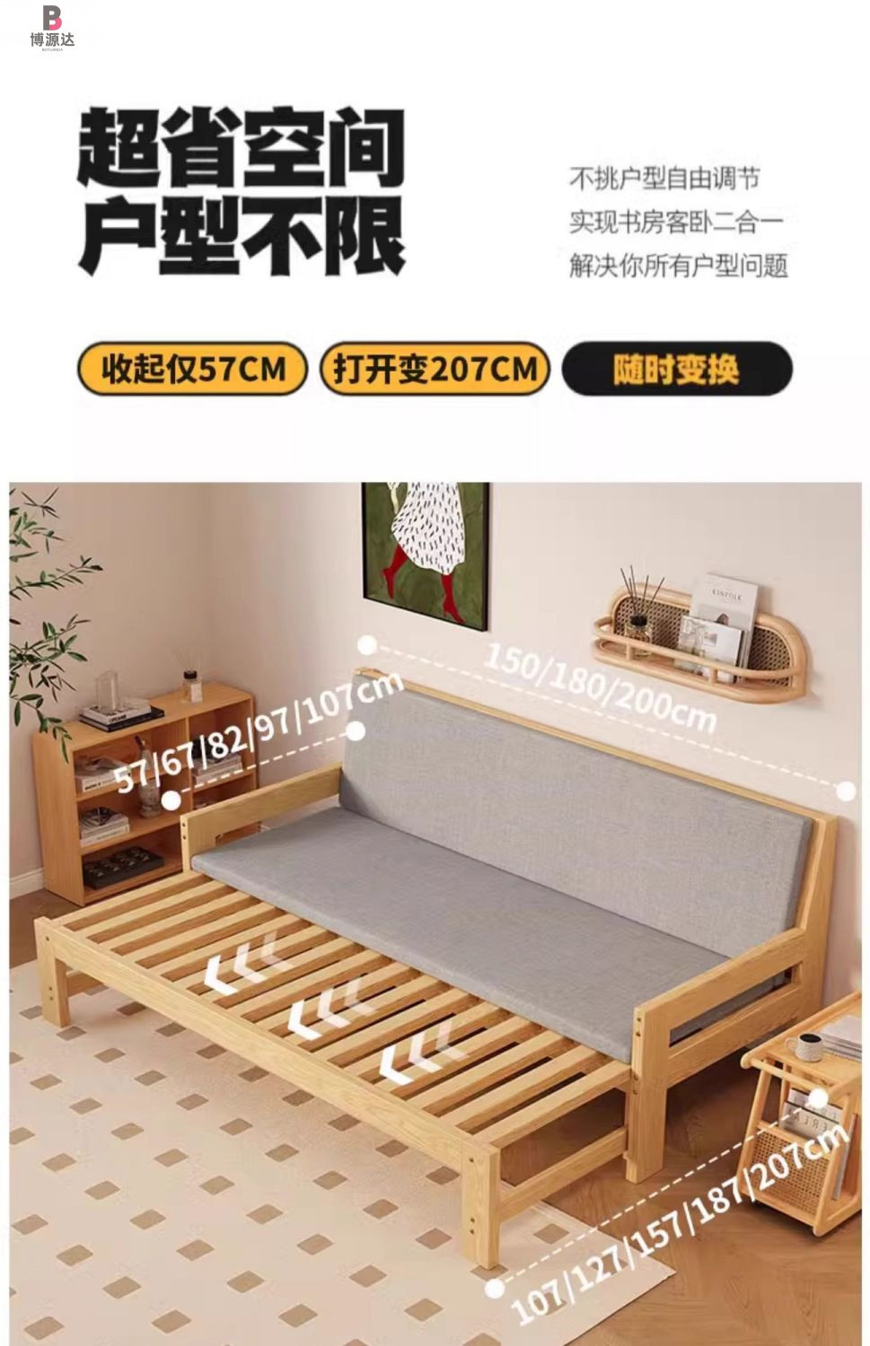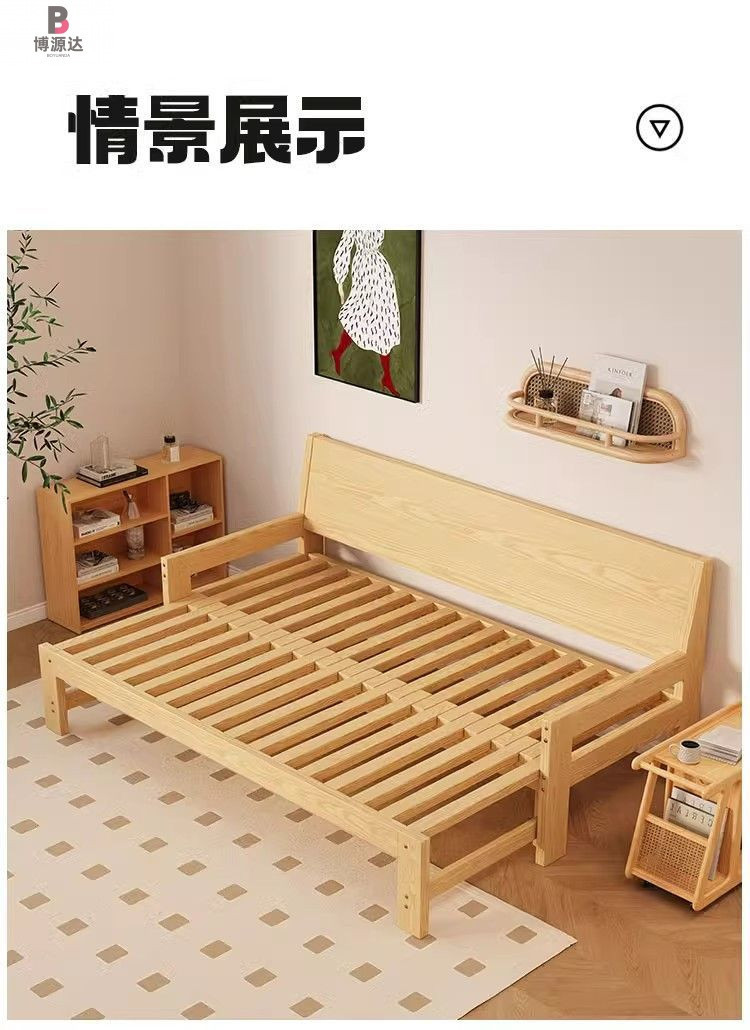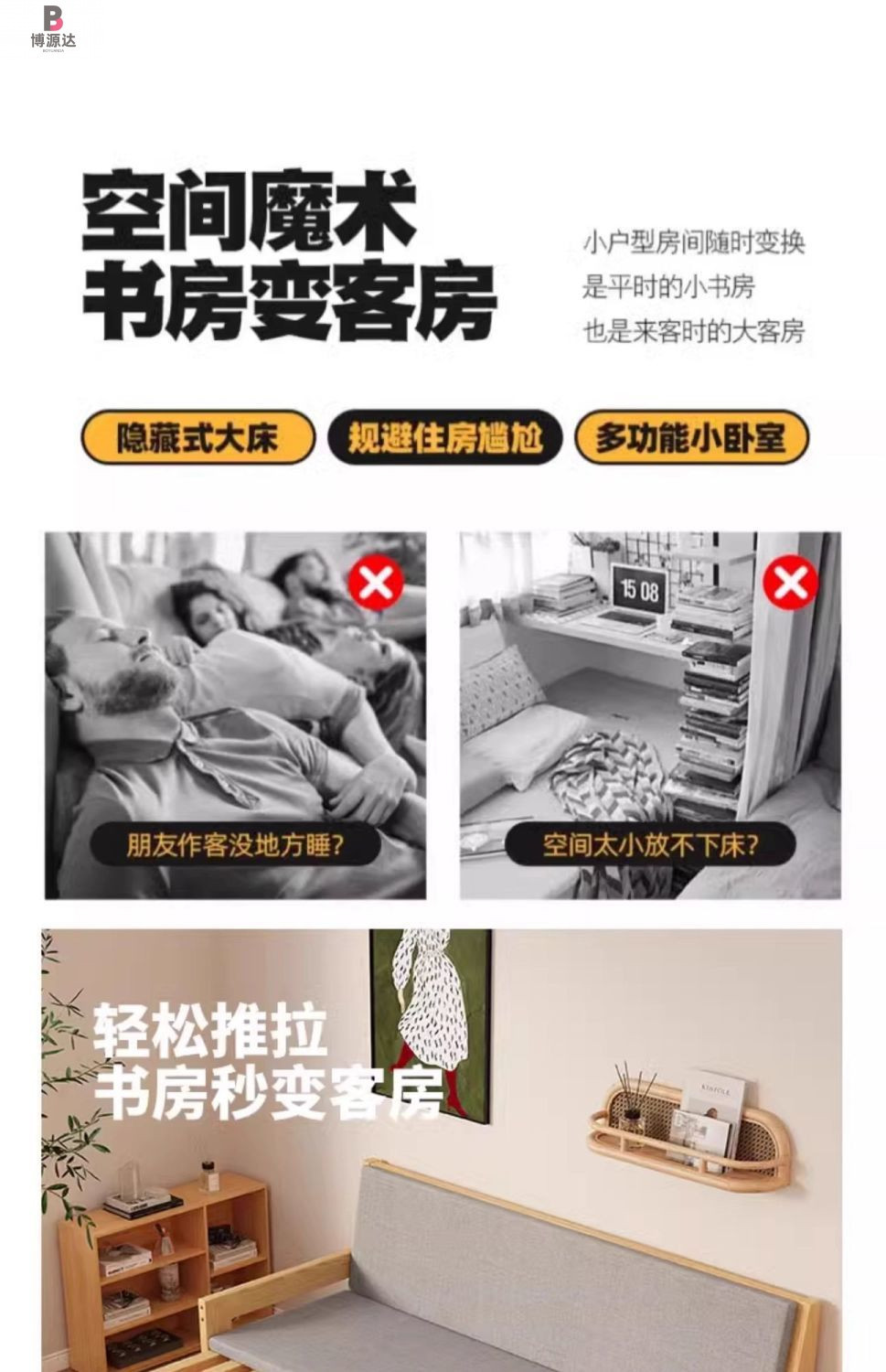 접이식 이중 목적 단단한 나무 소파 침대, 작은 아파트, 간단한 개폐식 슬라이딩 침대, 다기능 거실 싱글 다다미 침대