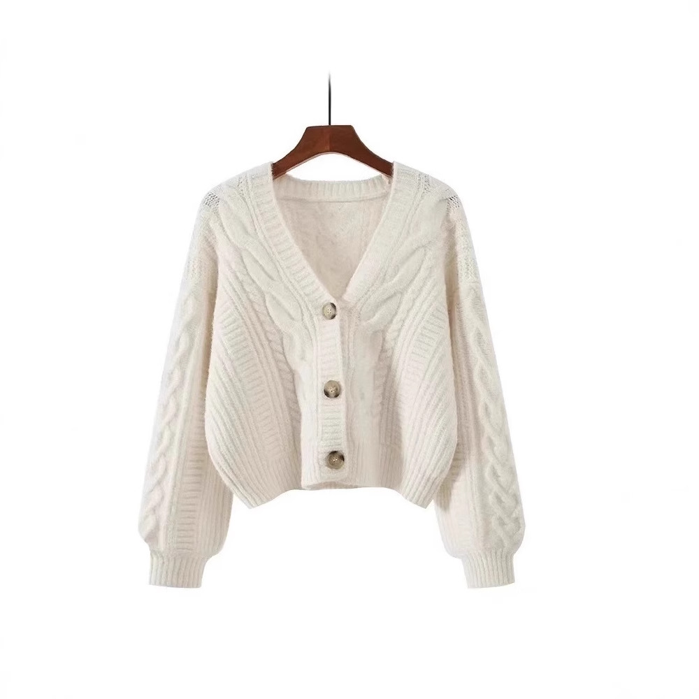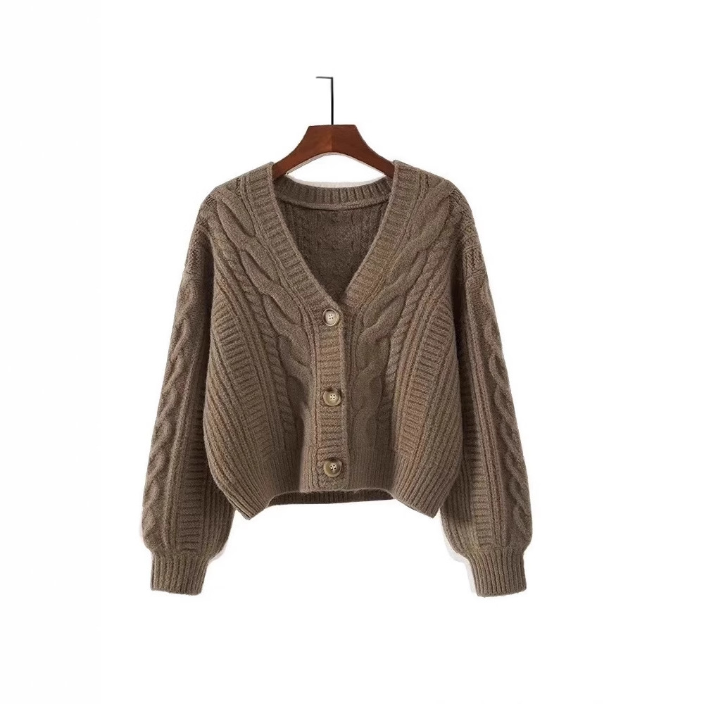 레트로 스타일 슬림 브이넥 니트 가디건 여성용 짧은 스웨터 작은 사람들을위한 봄, 가을 느슨한 얇은 스타일 외국 스타일스토어 가기
