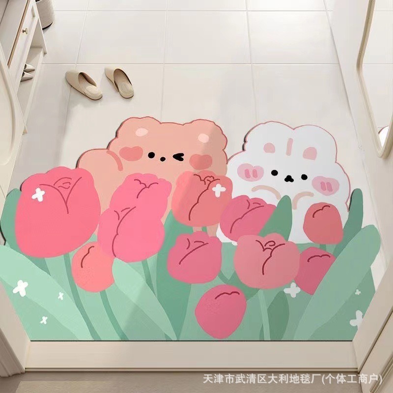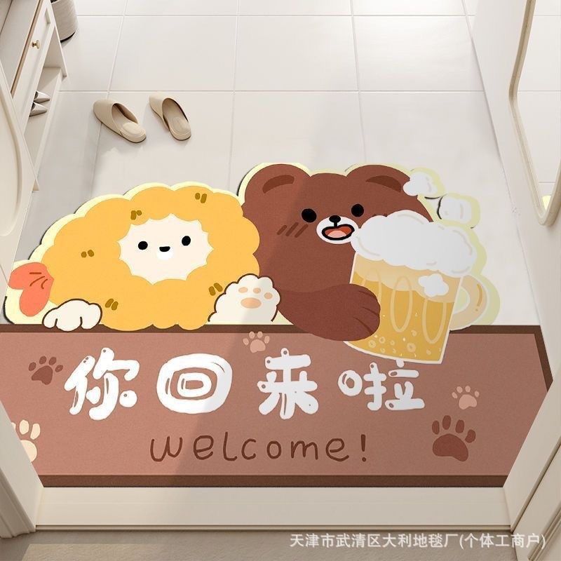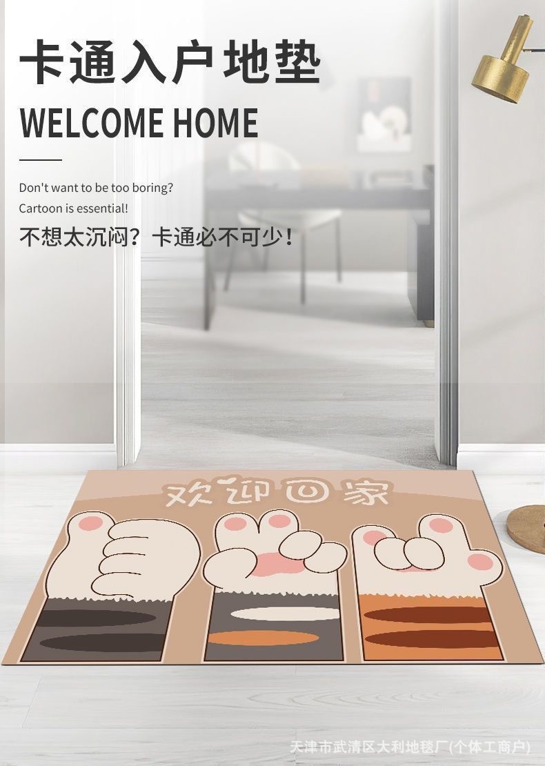 만화 입구 문 미끄럼 방지 홈 크리스탈 벨벳 바닥 매트 문 입구 미끄럼 방지 도어 매트 먼지 방지 및 먼지 방지 발 매트스토어 가기