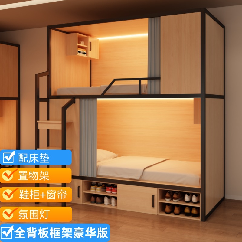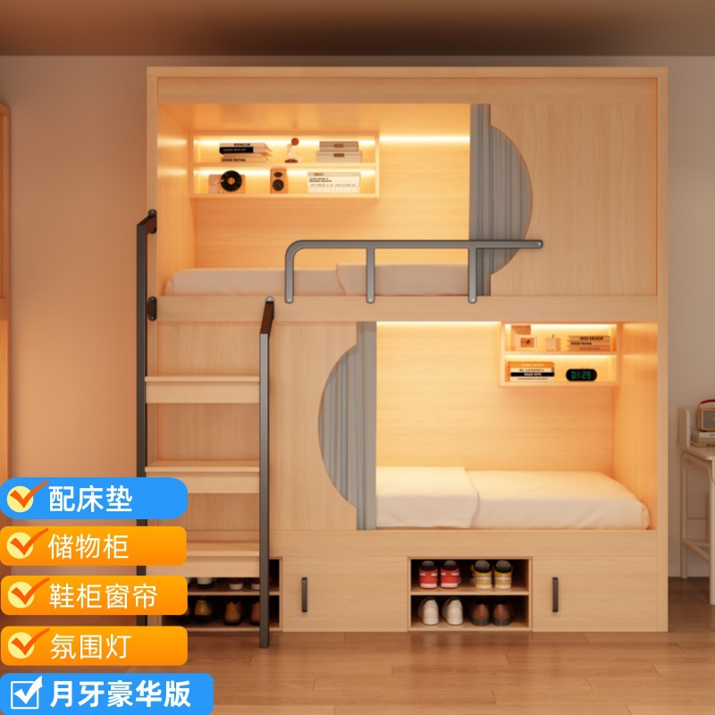 Changsha 맞춤형 청소원 및 B&B 공간 캡슐 이층 침대 맞춤형 이층 침대 아파트 침대 학교 단단한 나무 공간 캡슐 침대