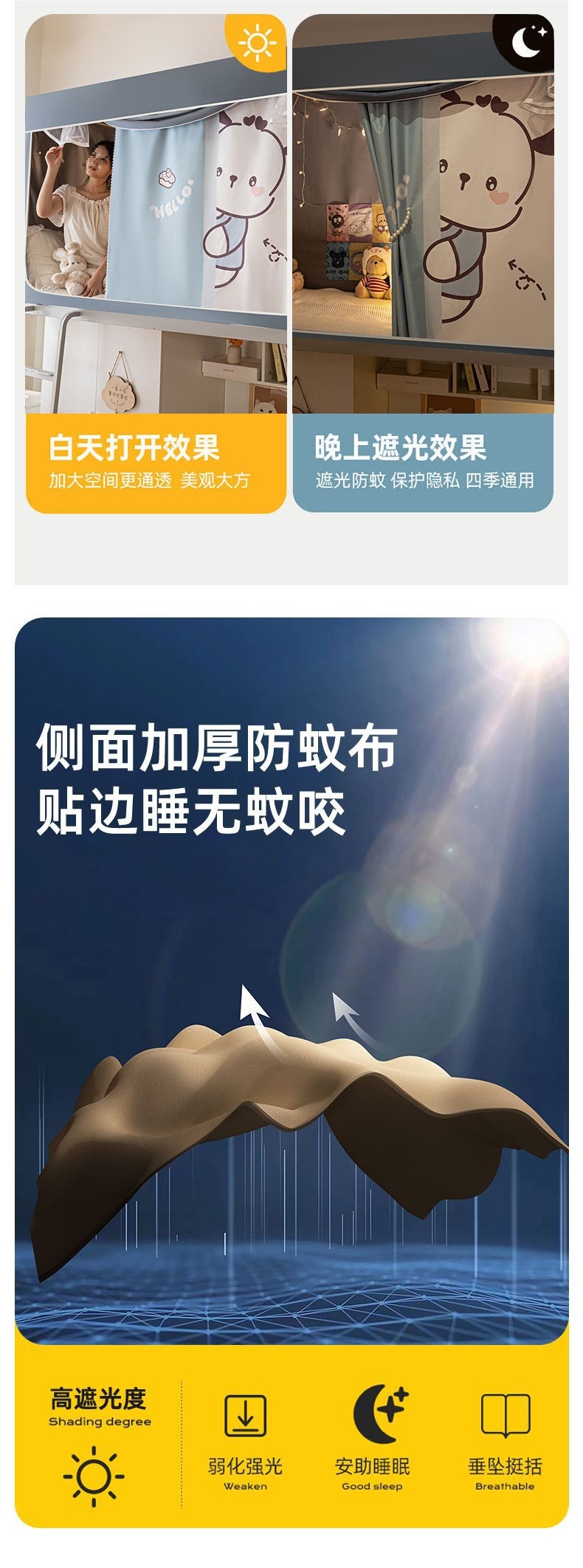 모기장 학생 기숙사 침실 블랙아웃 커튼 상단 및 하단 레벨 브래킷 침대 커튼 및 커튼 일체형 0.9m 0.8m 침대