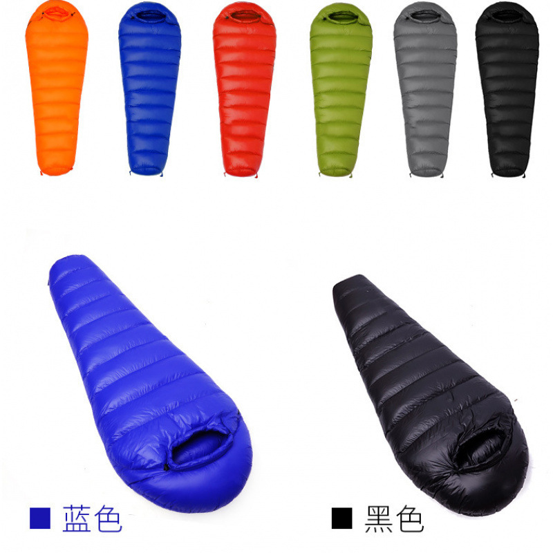 공장 도매 거위털 미라 다운 침낭 성인 야외 캠핑 추위 지역 -15도 접합 점심 시간 수면 가능스토어 가기