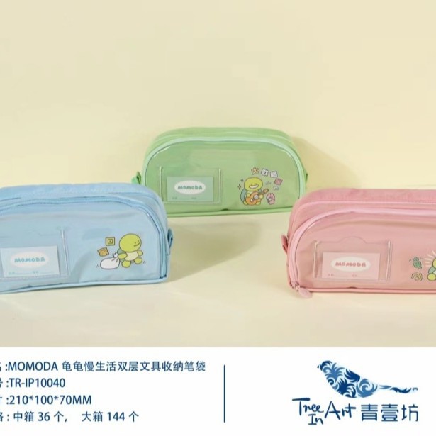 • 41873-TR-IP10040MOMODA 거북이 슬로우 라이프 더블 레이어 문구 보관 연필 가방