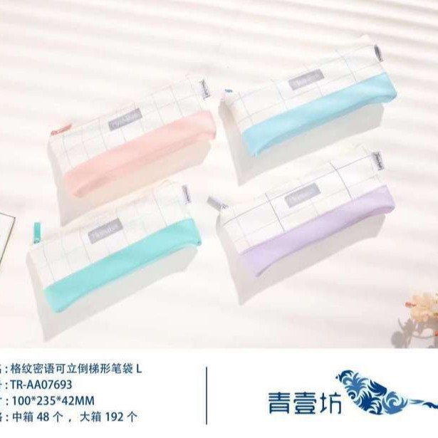 • 34772-TR-AA07693 격자 무늬 비밀 대화 스탠드업 반전 사다리꼴 필통 L