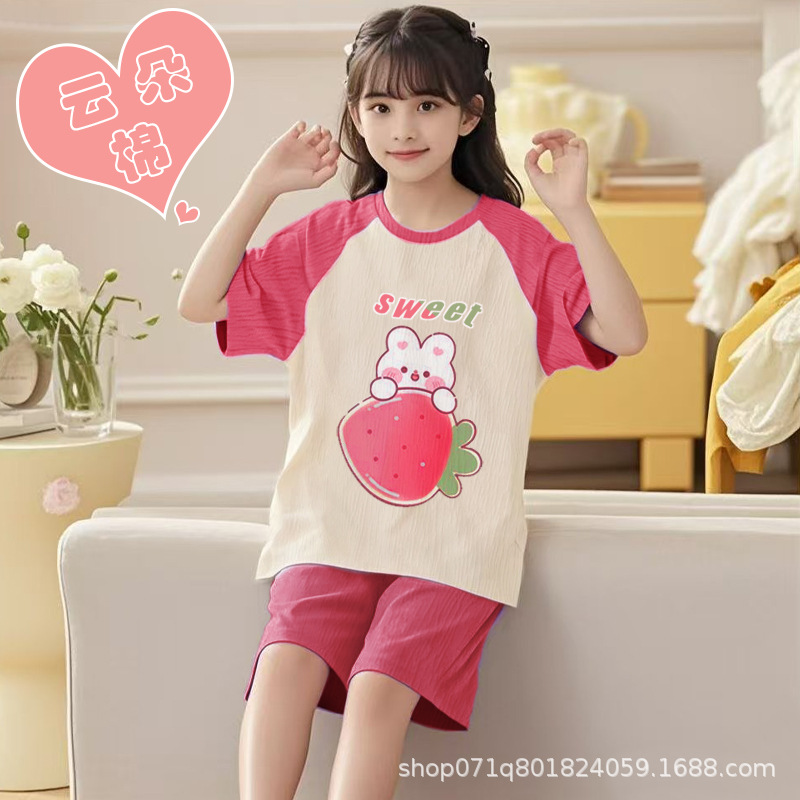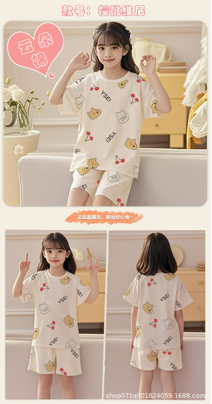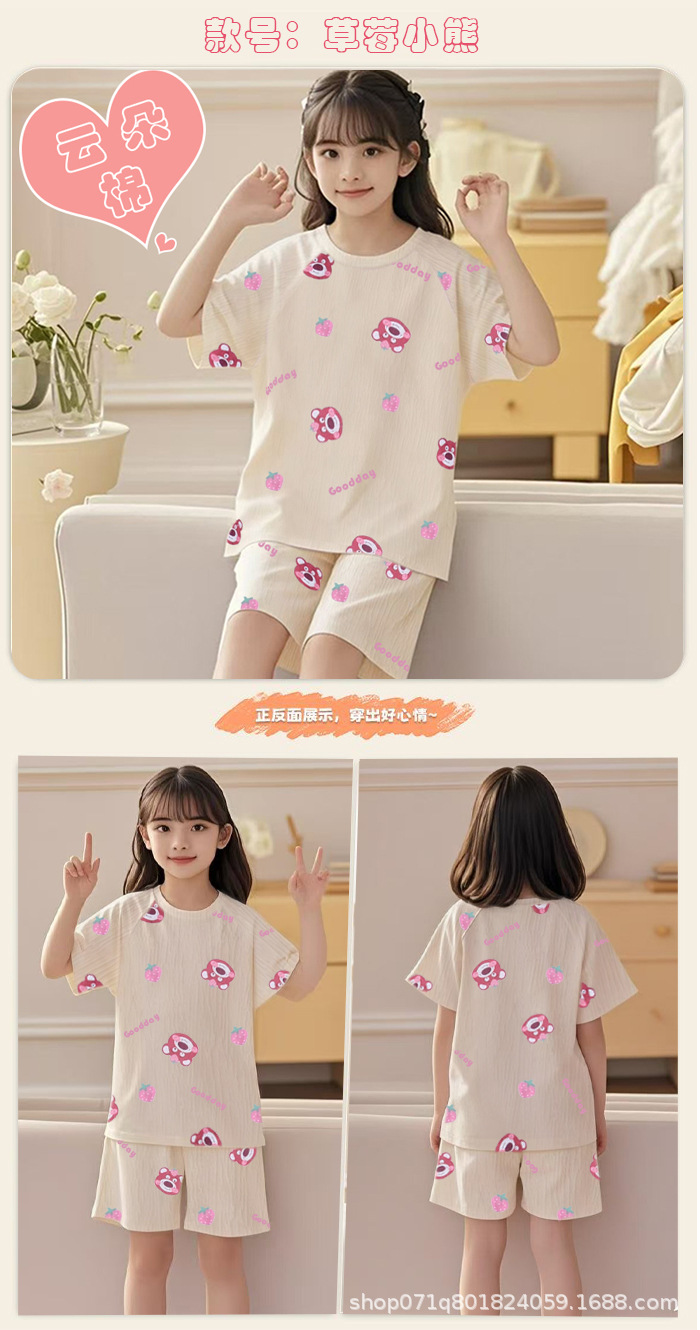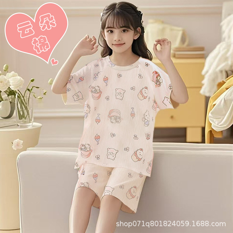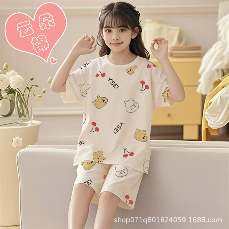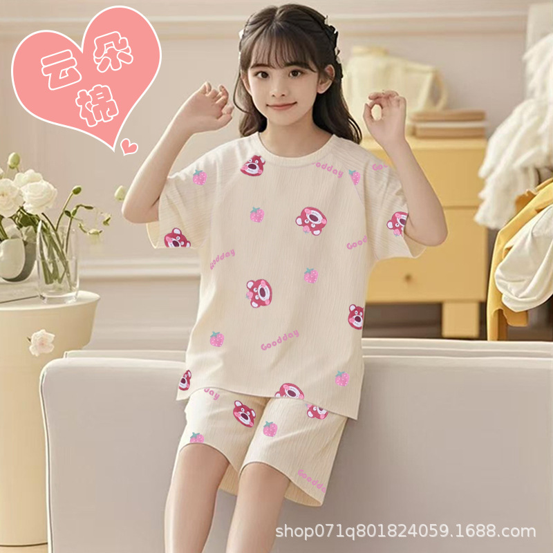 [클라우드 코튼 여아 잠옷 세트] 여름 아동 잠옷 세트 반팔 반바지 여아 중대형 아동
