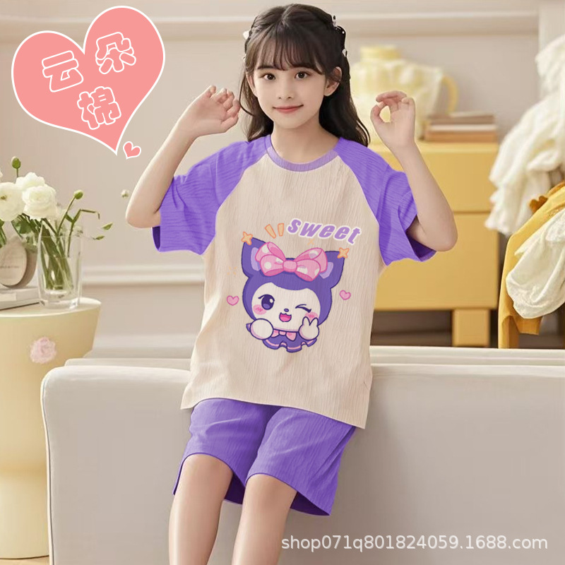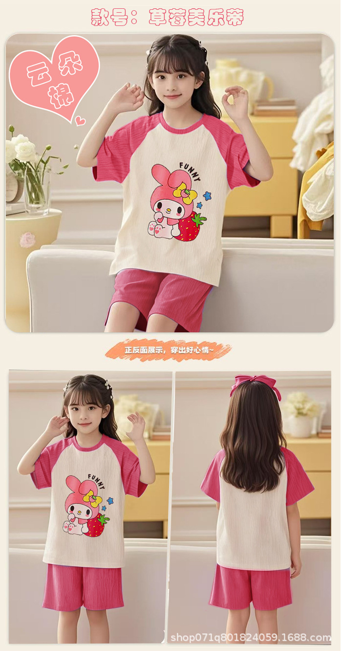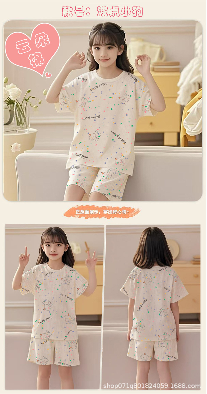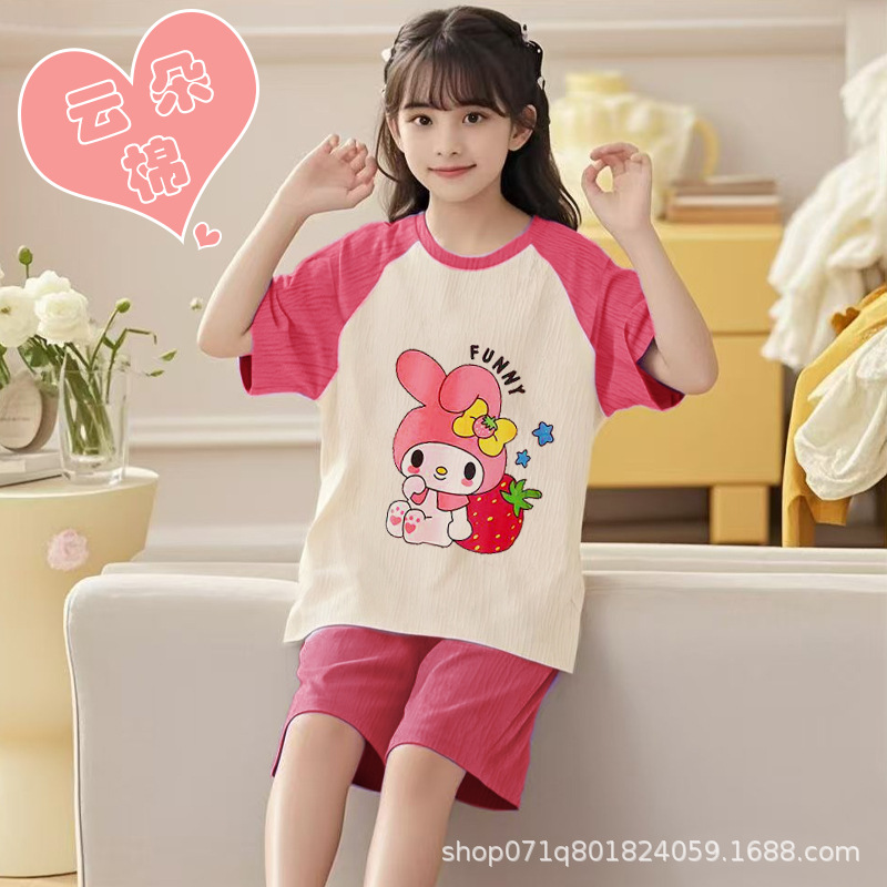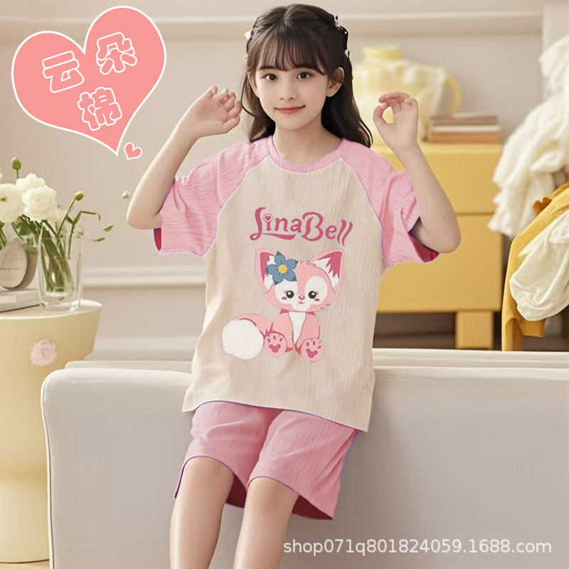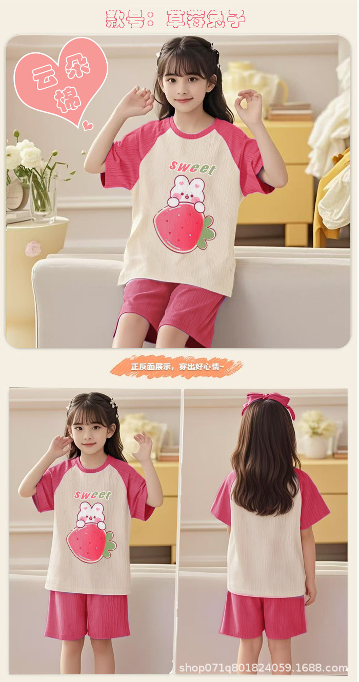 [클라우드 코튼 여아 잠옷 세트] 여름 아동 잠옷 세트 반팔 반바지 여아 중대형 아동