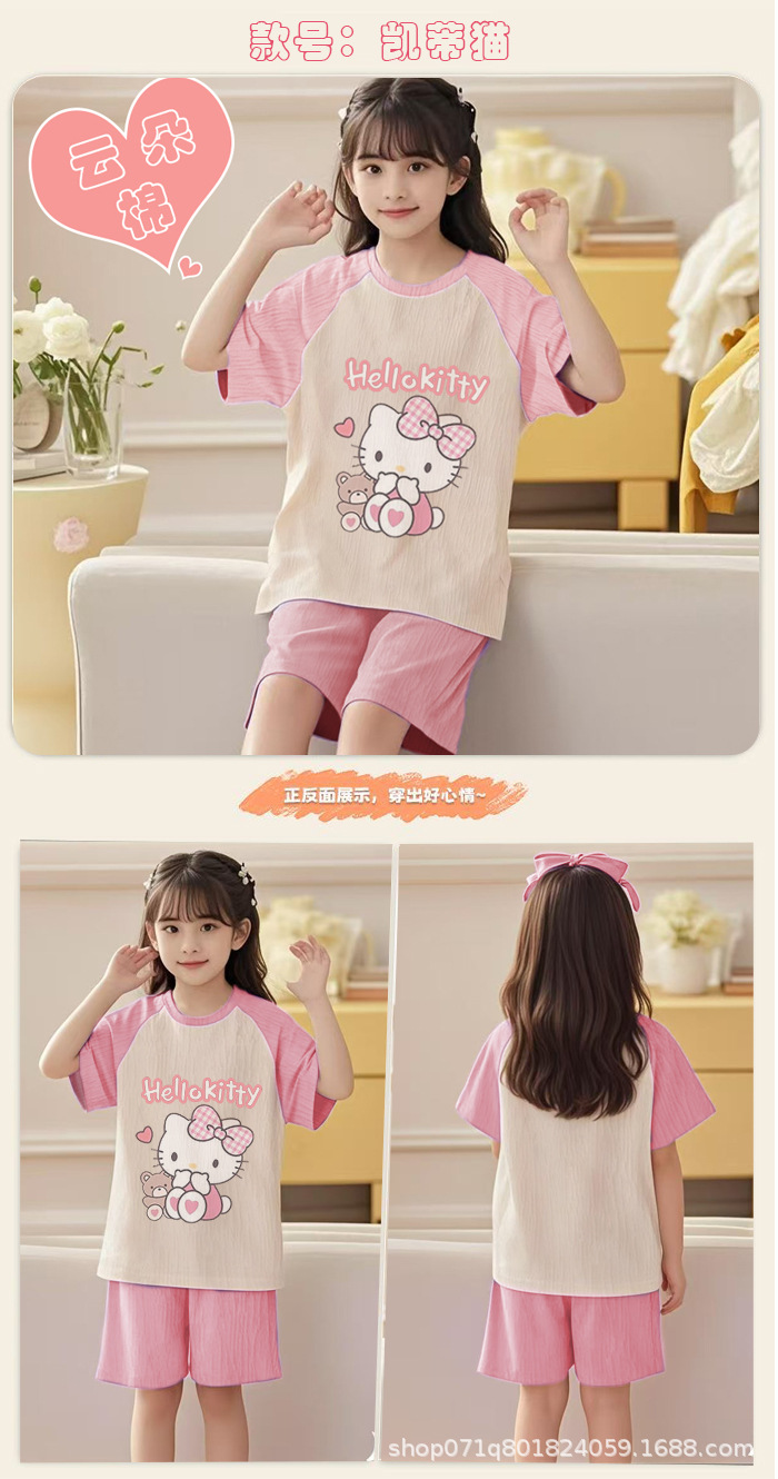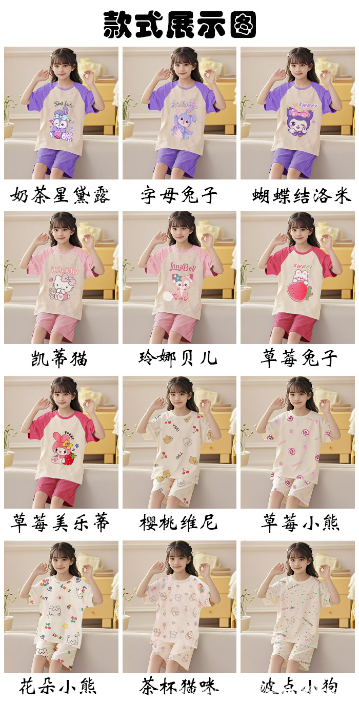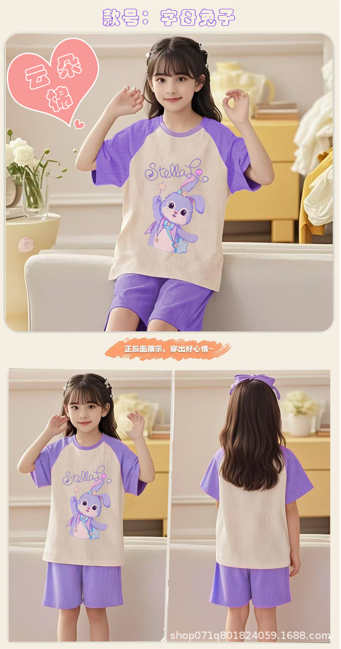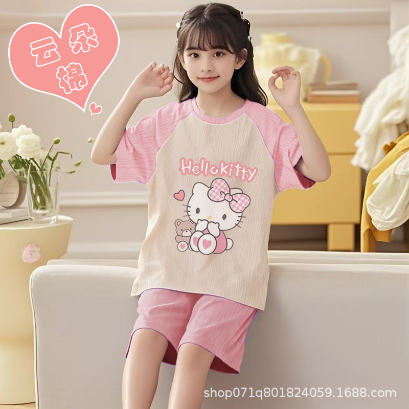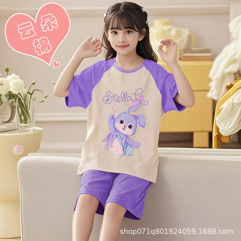 [클라우드 코튼 여아 잠옷 세트] 여름 아동 잠옷 세트 반팔 반바지 여아 중대형 아동