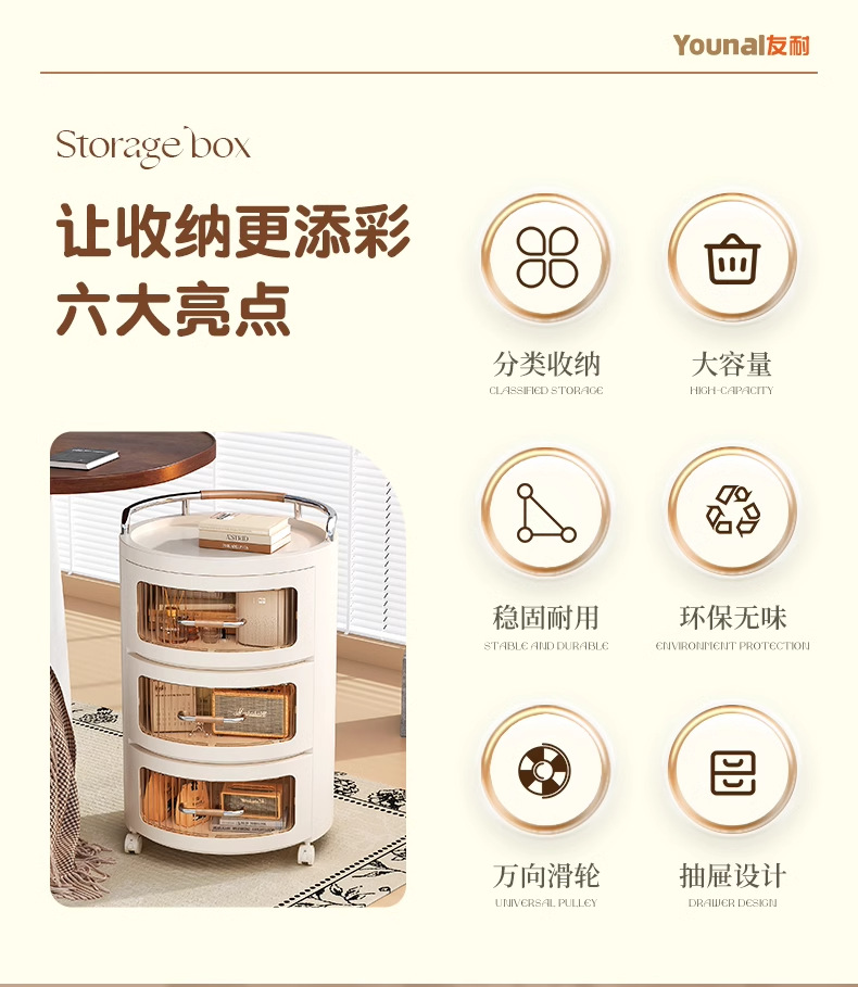 Younai 다기능 서랍형 거실 이동식 다층 스낵 보관 캐비닛 침실 침대 옆 보관 캐비닛스토어 가기
