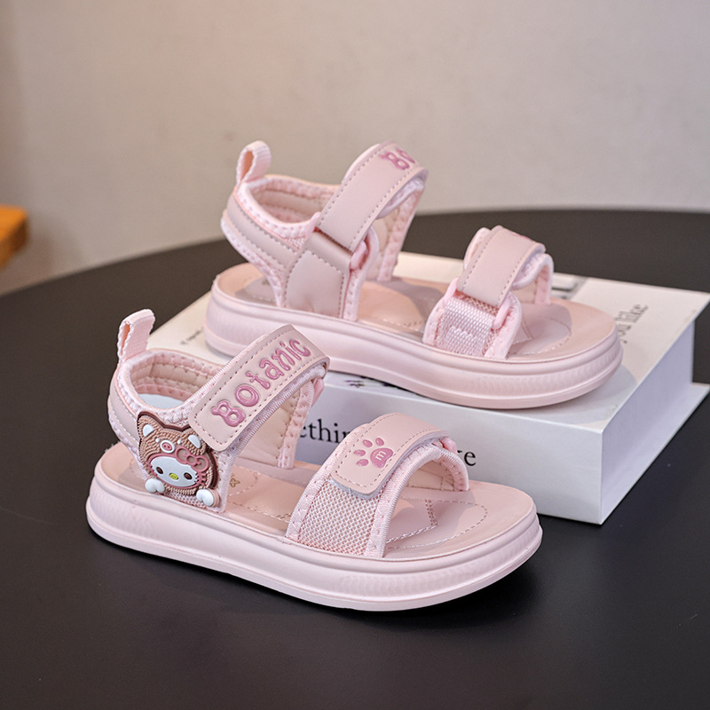 어린이 오픈 발가락 해변 신발 2025 봄과 여름 새로운 여자 샌들 귀여운 곰 벨크로 어린이 신발 인터넷 연예인스토어 가기