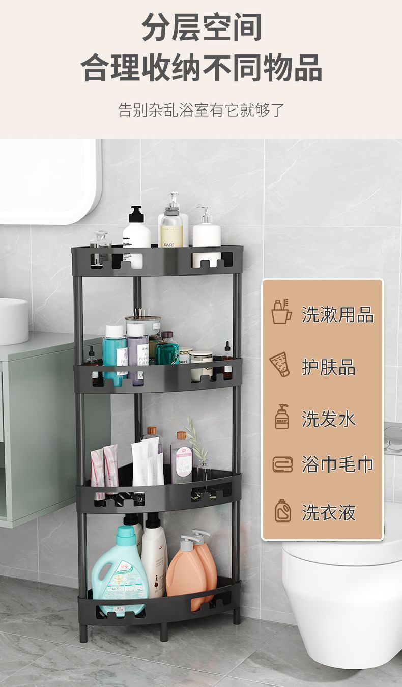 욕실 수납 선반, 화장실, 욕실, 펀치 없는 수납 선반, 욕실 바닥 삼각형 수납 선반스토어 가기