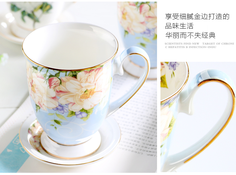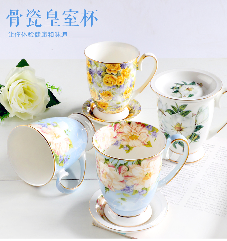 뚜껑이 달린 창의적인 유럽 스타일의 머그잔 대용량 본차이나 워터 컵 아침 식사 컵 우유 커피 컵 Tang Yan