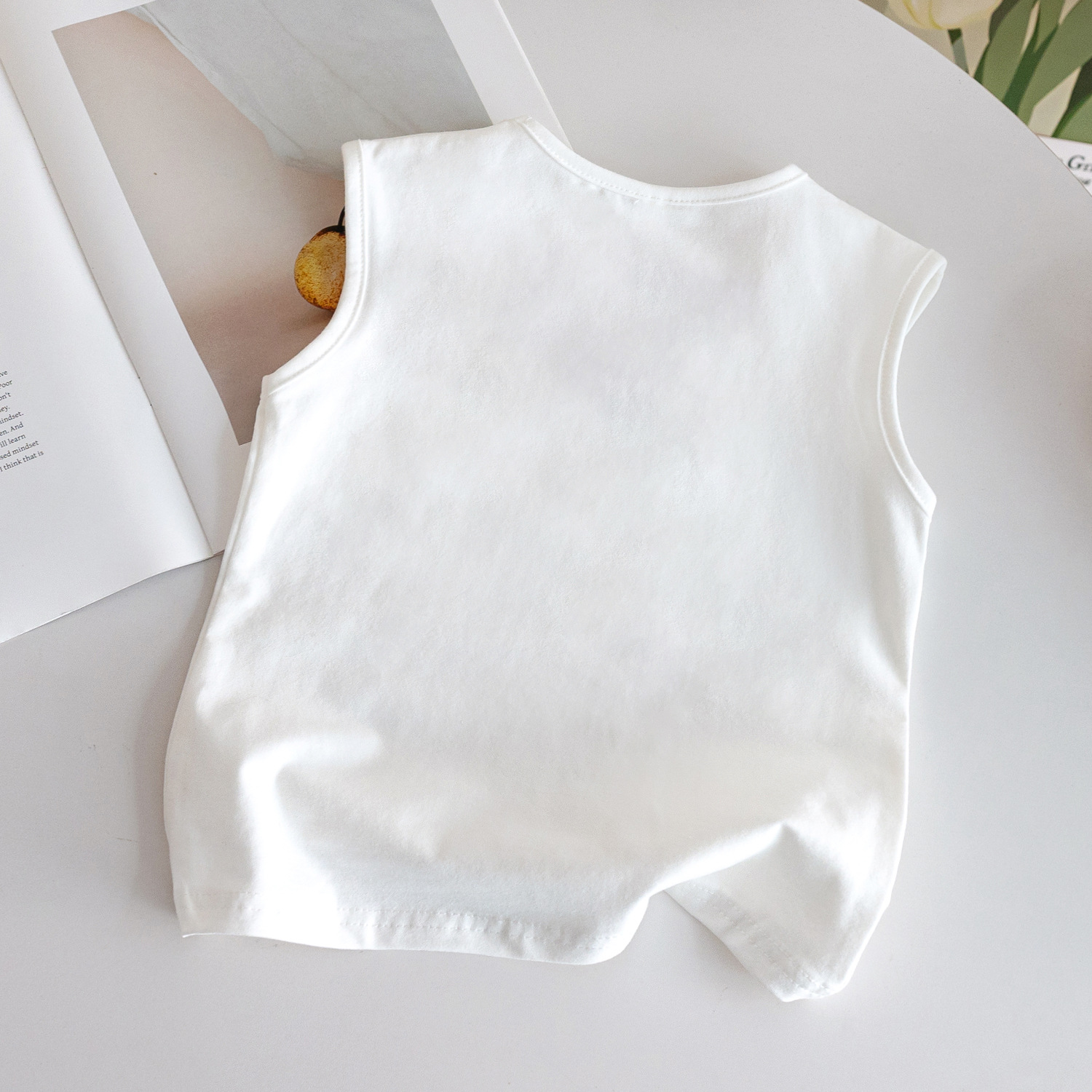 여자 조끼 순수 코튼 여름 옷 2025 새로운 한국어 스타일 달콤한 어린이 아기 옷 유행 아기상의스토어 가기