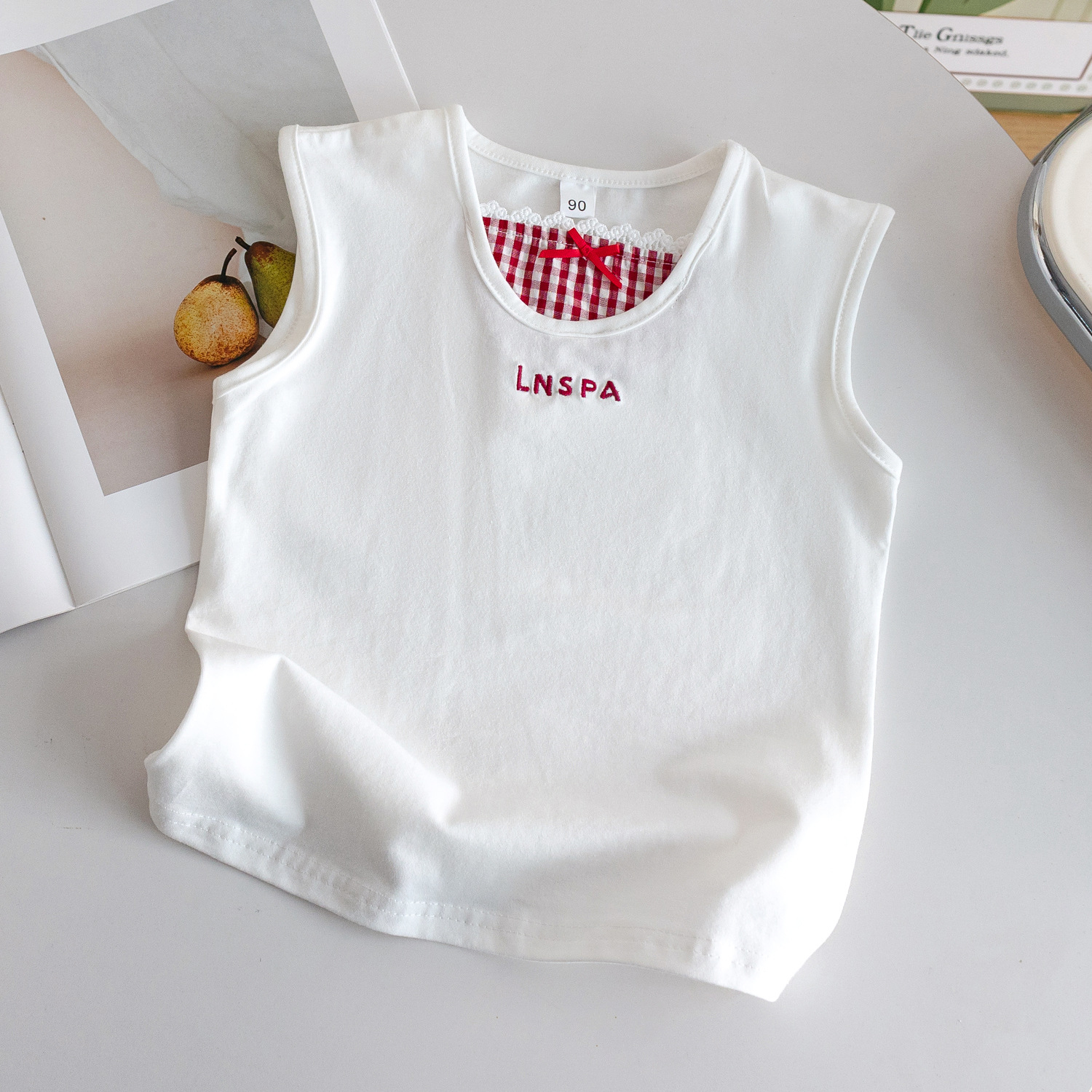 여자 조끼 순수 코튼 여름 옷 2025 새로운 한국어 스타일 달콤한 어린이 아기 옷 유행 아기상의