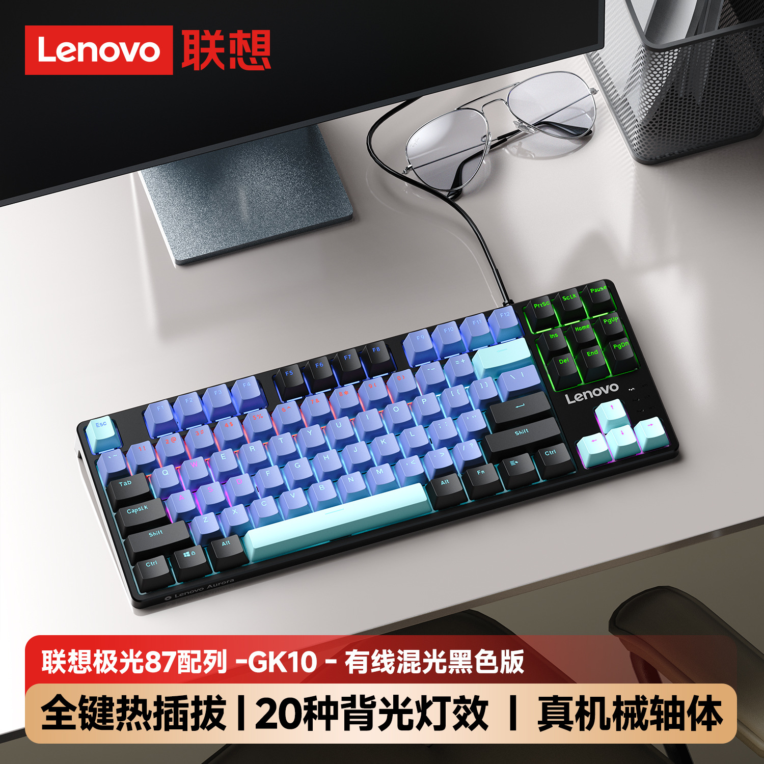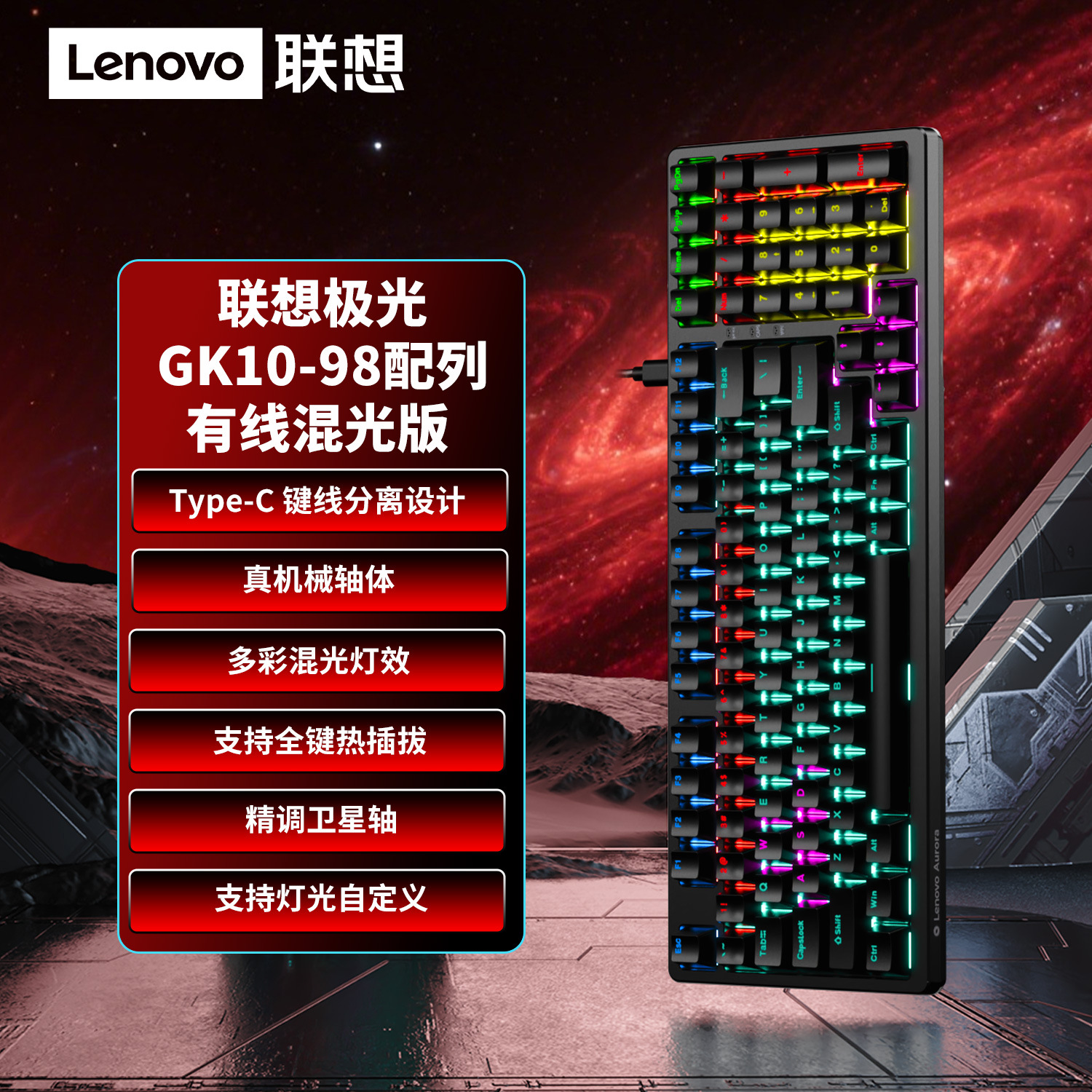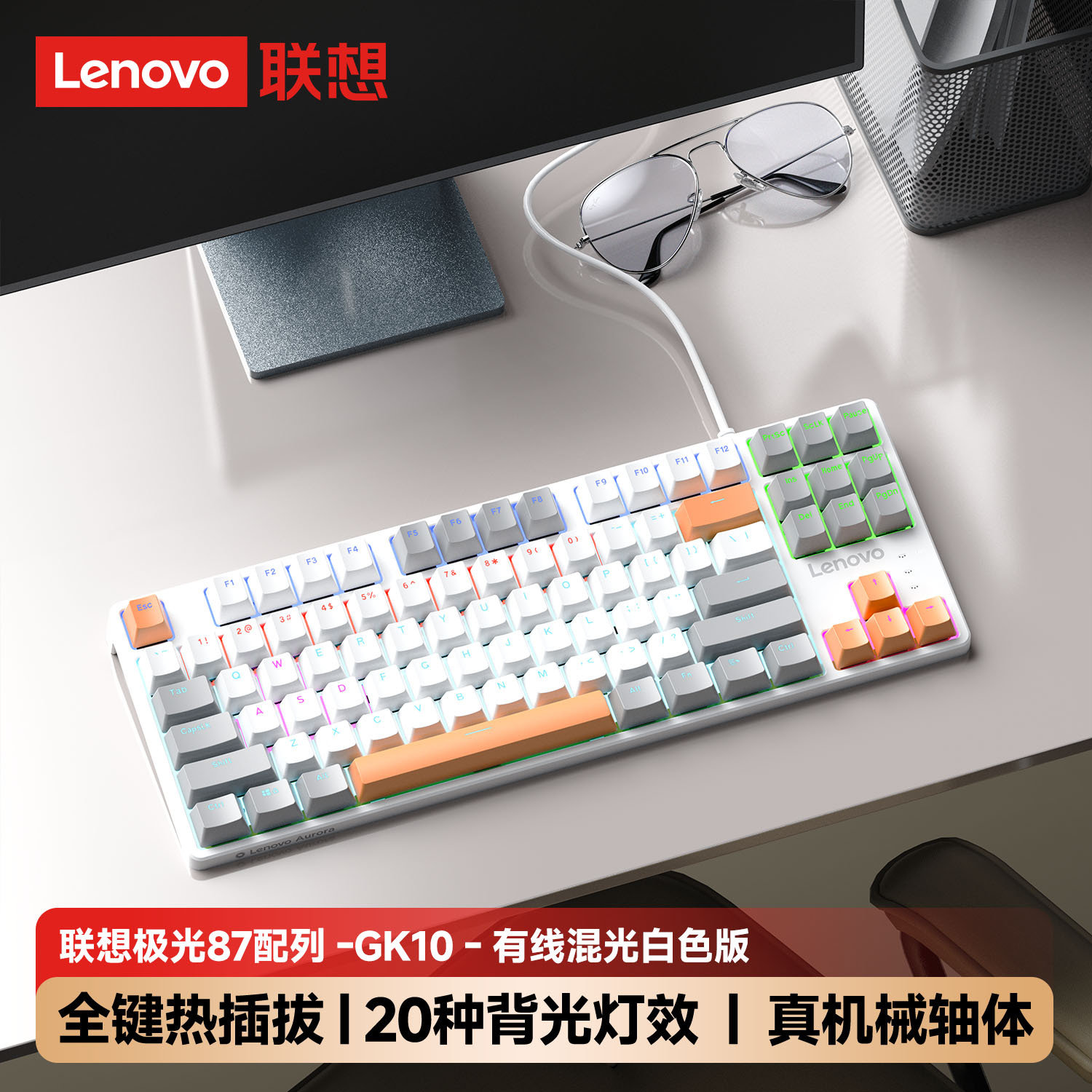 Lenovo 유선 키보드 GK10 풀 키 핫 스왑 가능 실제 기계식 축 유형-C 인터페이스 e-스포츠 오피스 모델에 적합