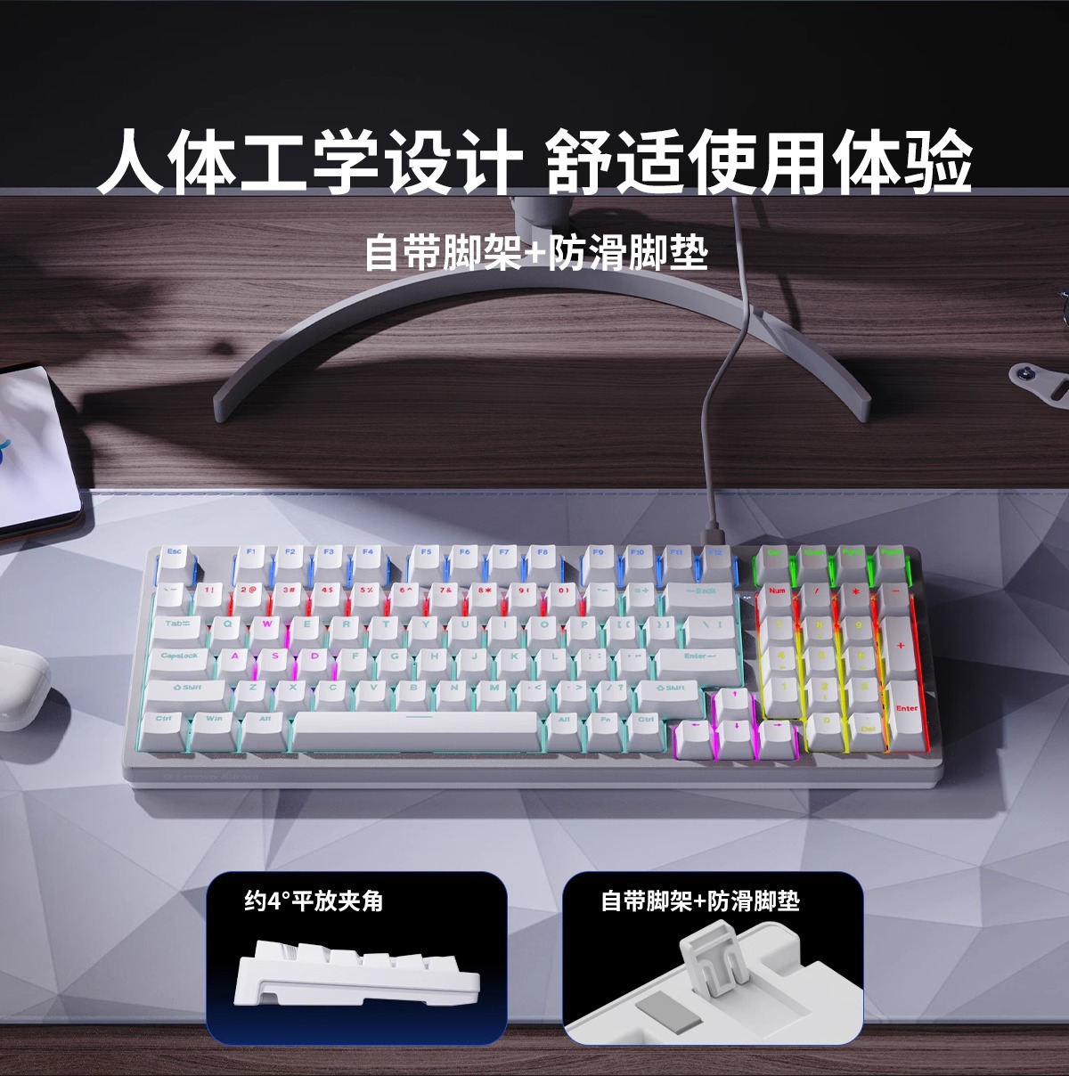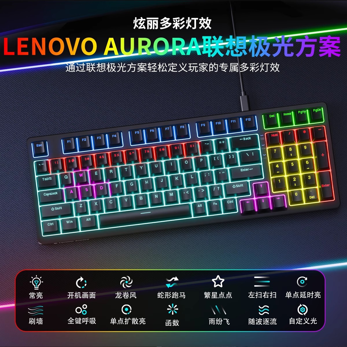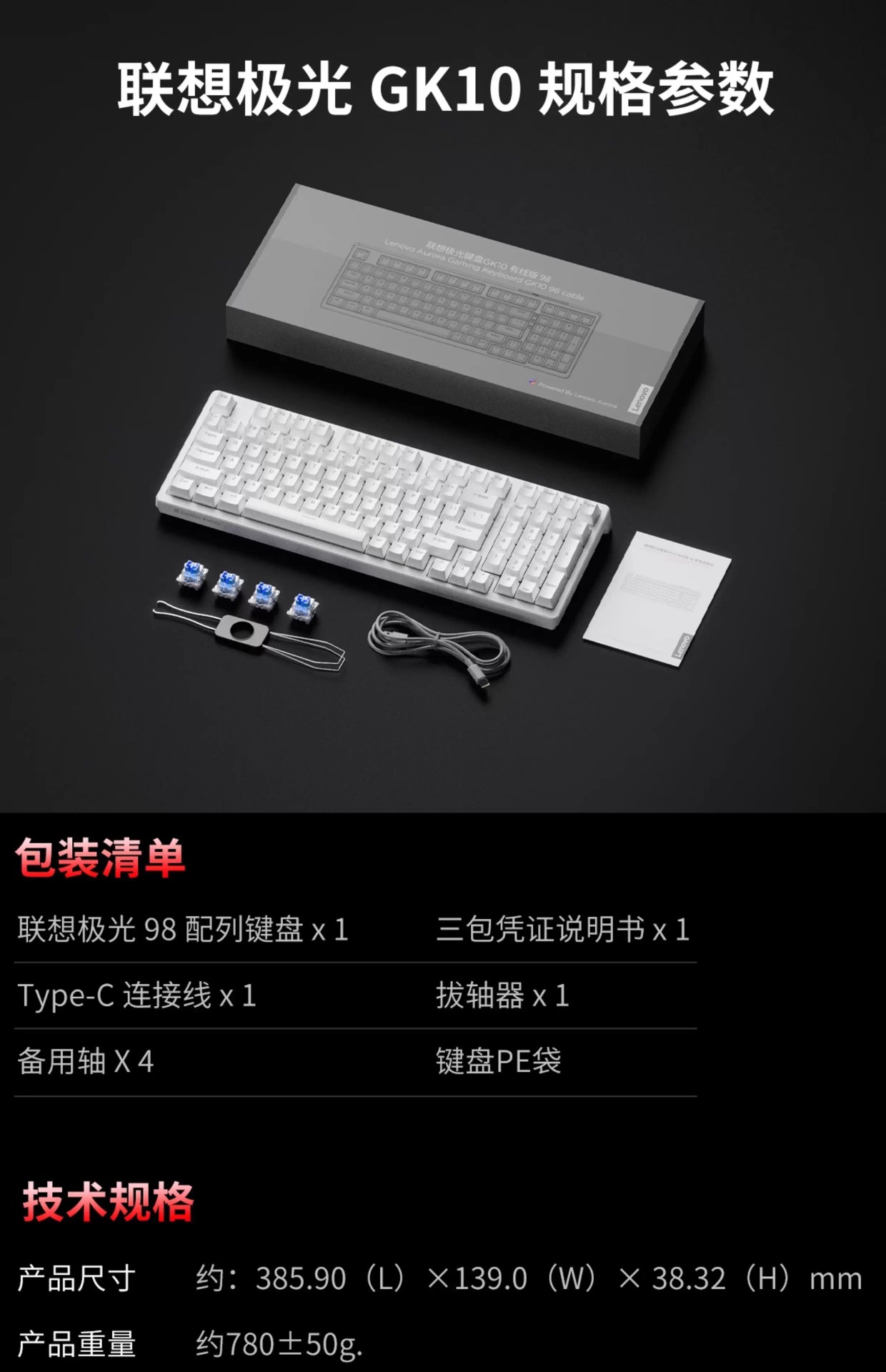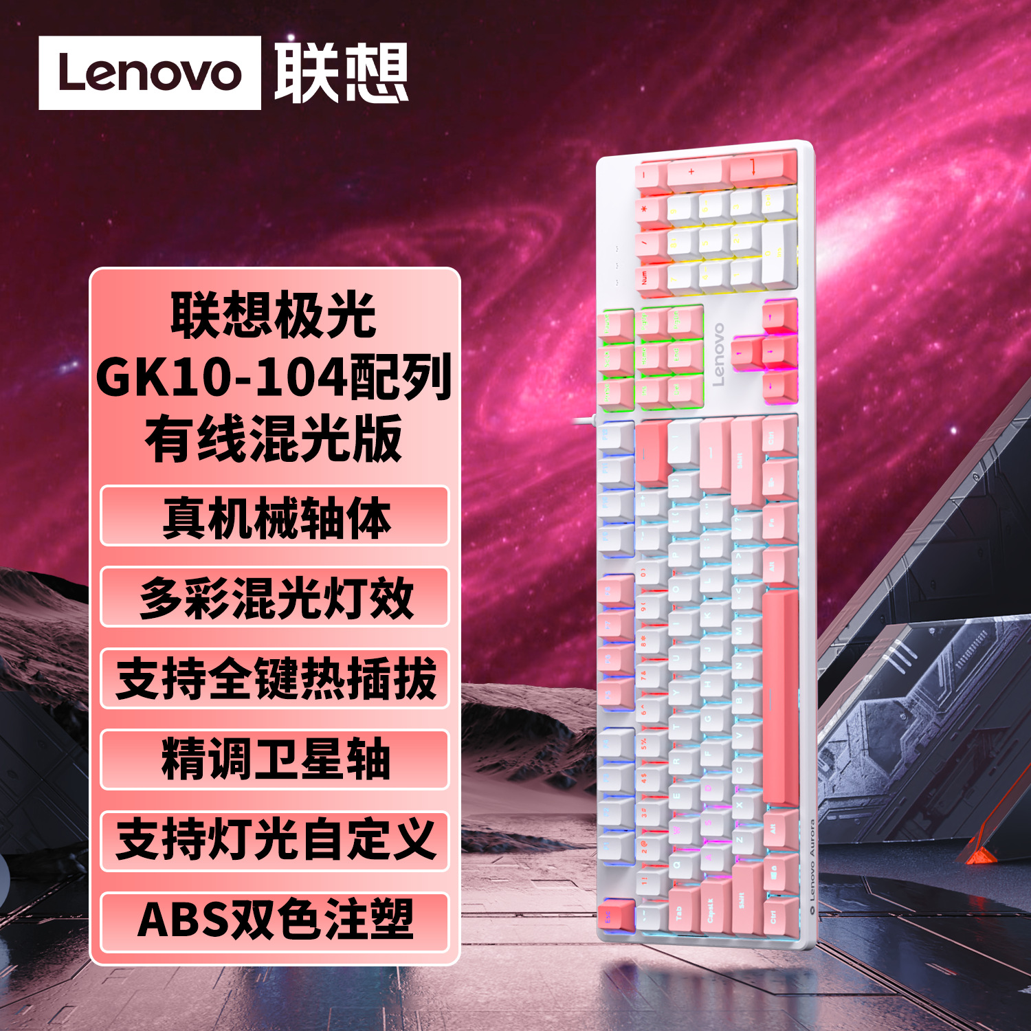 Lenovo 유선 키보드 GK10 풀 키 핫 스왑 가능 실제 기계식 축 유형-C 인터페이스 e-스포츠 오피스 모델에 적합
